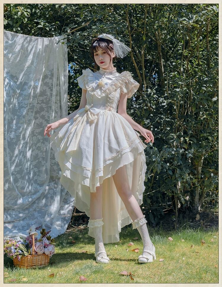 【Carat Love JSK】WPオリジナルデザイン エレガント 前ショート 後ろロング ロングドレス サマーロリータ リボン付き 夏物 puji35196138615