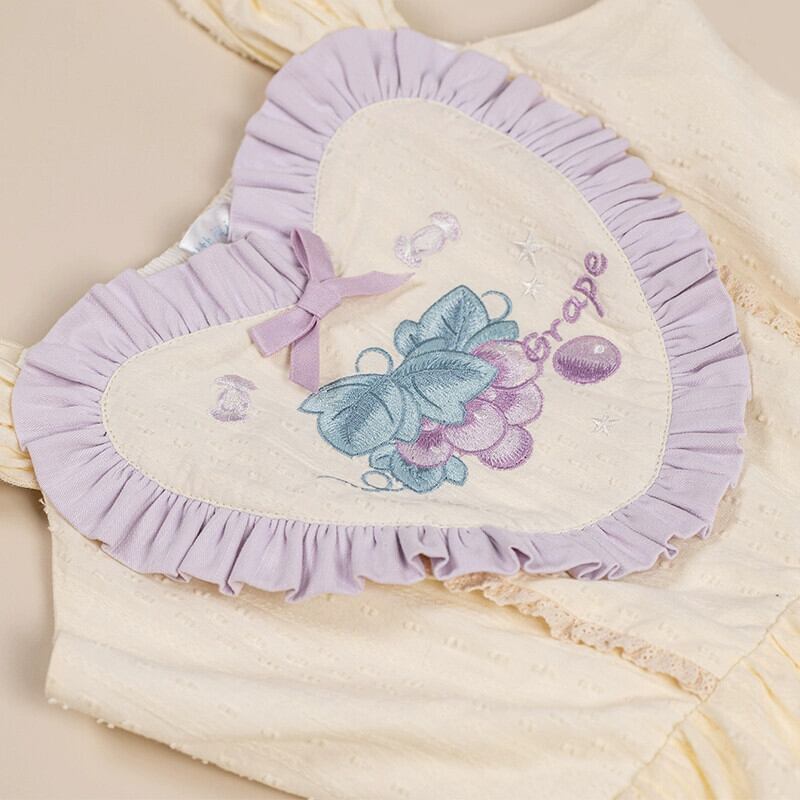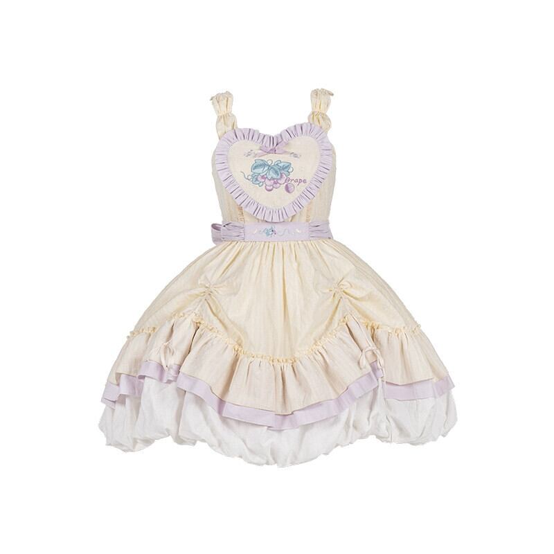 【グレープチーズジャージ】withpujiオリジナルデザイン グレープ刺繍つぼみスカート ロリータサマークリーム色 夏物 puji78592140355