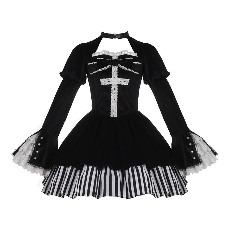 【レクイエムOP】WPオリジナルデザイン ゴシック ダーク 厚手 ベルベット フェイクツーロリータサマー 夏物 puji54180496129