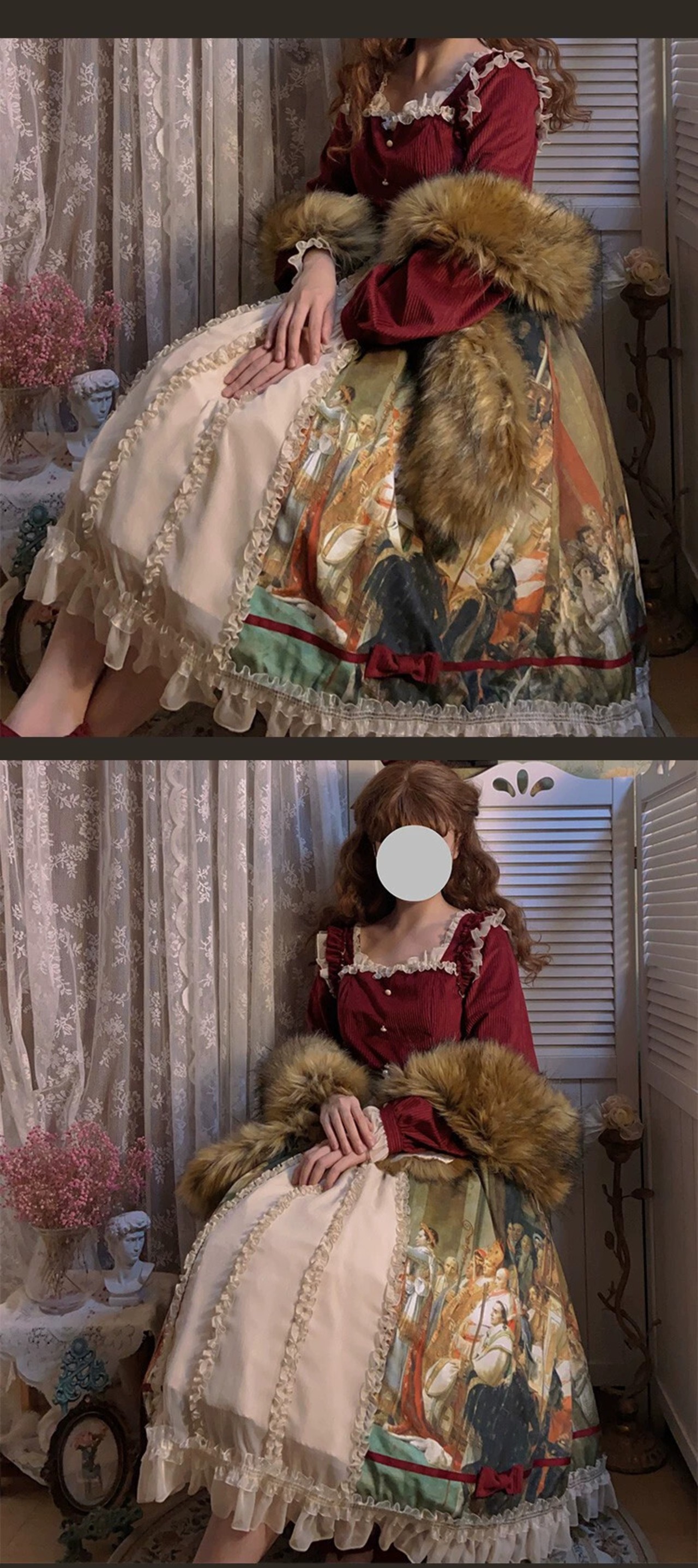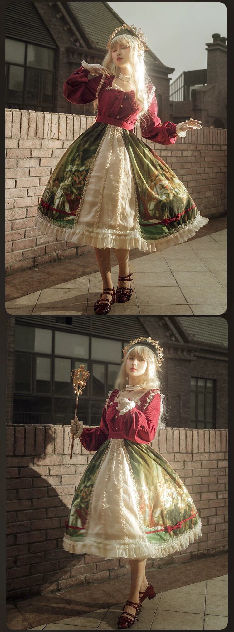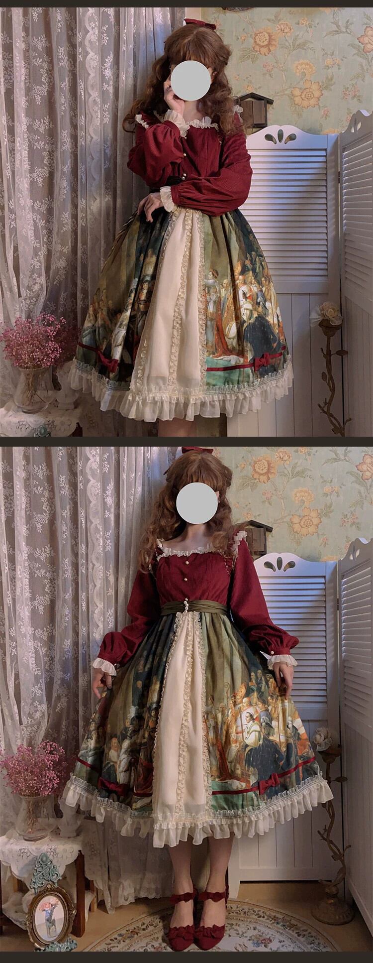 【霧月クーデターOP】WPリシベルベット油絵ハンドルレトロパレススイングロリータスカート春 レース スプリング 春物 puji83675423466