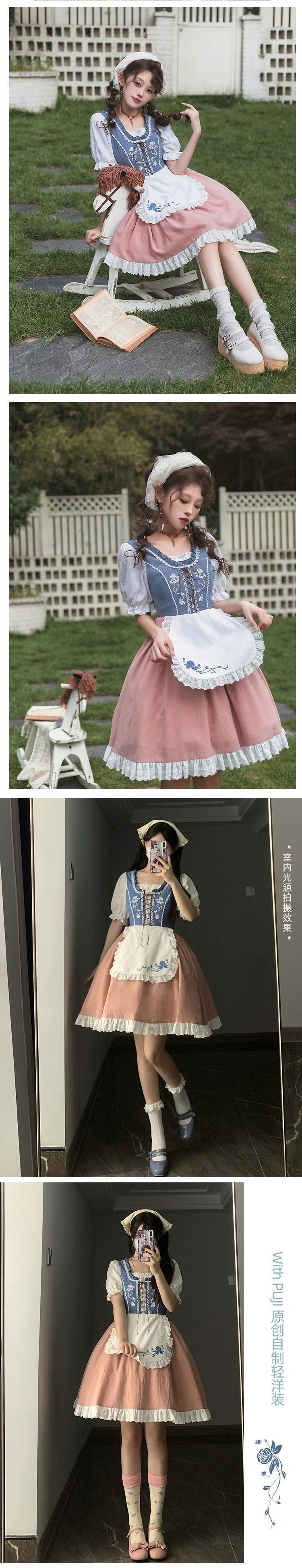【ライン田園OP】withpujiオリジナルデザインバイエルン風フェイク4刺繍ロリータサマードレス レッド 夏物 puji66292529276