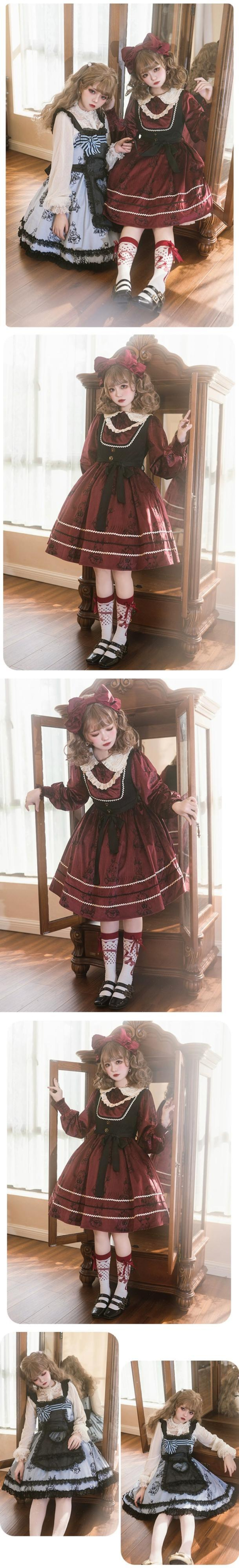 【パペットラビット】WPオリジナルハンドルフィギュアベルベットプリントフェイク二枚オプドレスJSKツインサマーロリータ 夏物 puji95694685642