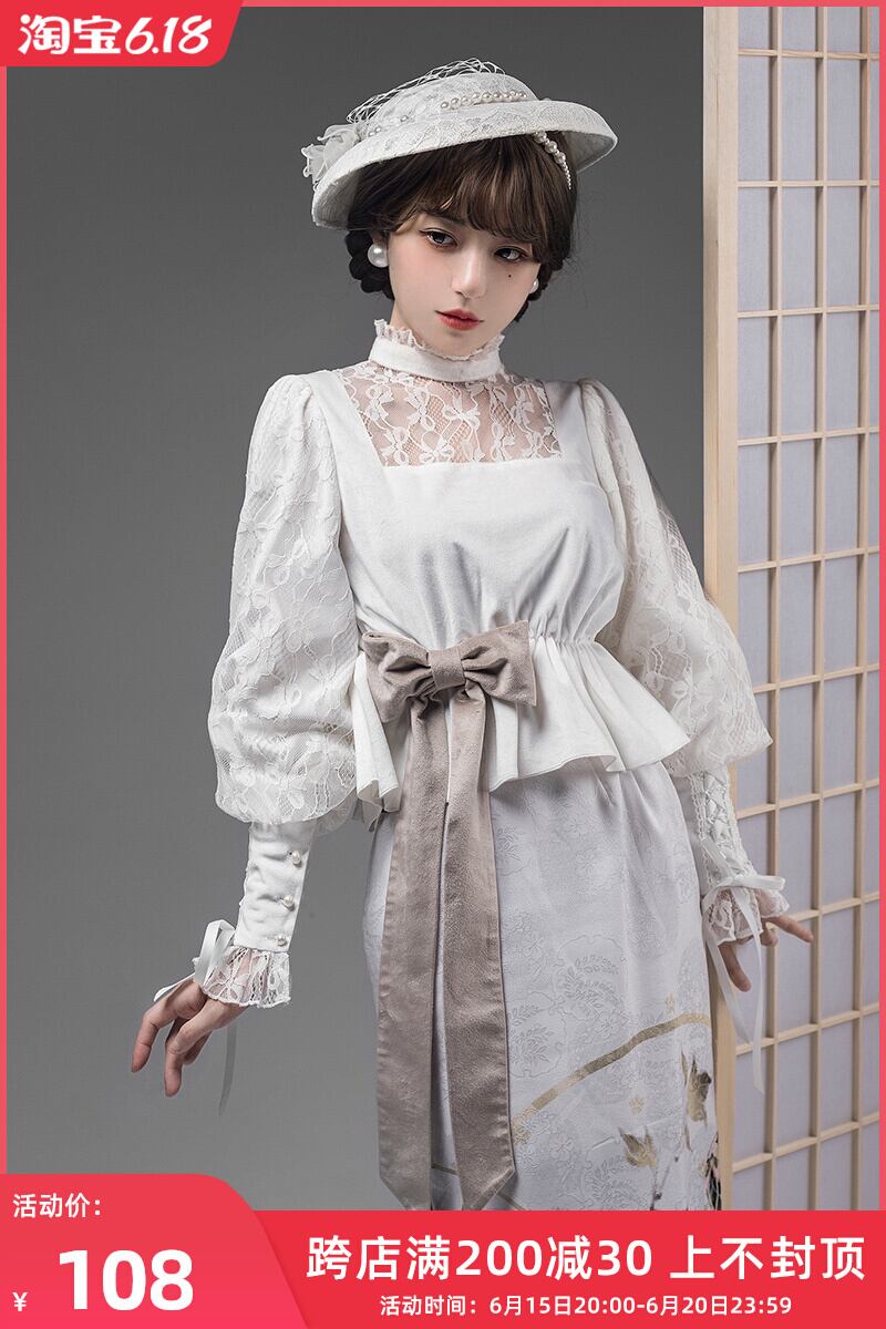 [Mufeng]withpujiオリジナルデザインラム脚袖レースステッチロリータインナー春夏長袖スタンドカラー ロング スプリング 春物 サマー 夏物 puji11373849394