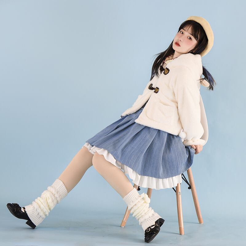 【Little Bear Fresh Milk Tea】withpujiオリジナルデザイン ラビットファーコート ラムウール ロリータ 冬コート プラスベルベット ウィンター 冬物 puji28873330668