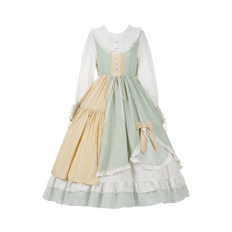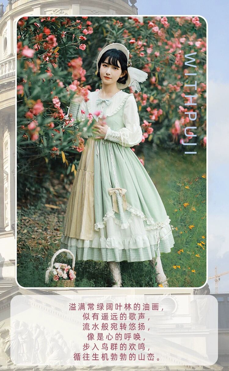 【Minggu op】withpujiオリジナル自作ロリータドレス チェック柄ステッチが爽やかなサマードレス 夏物 puji51444969722