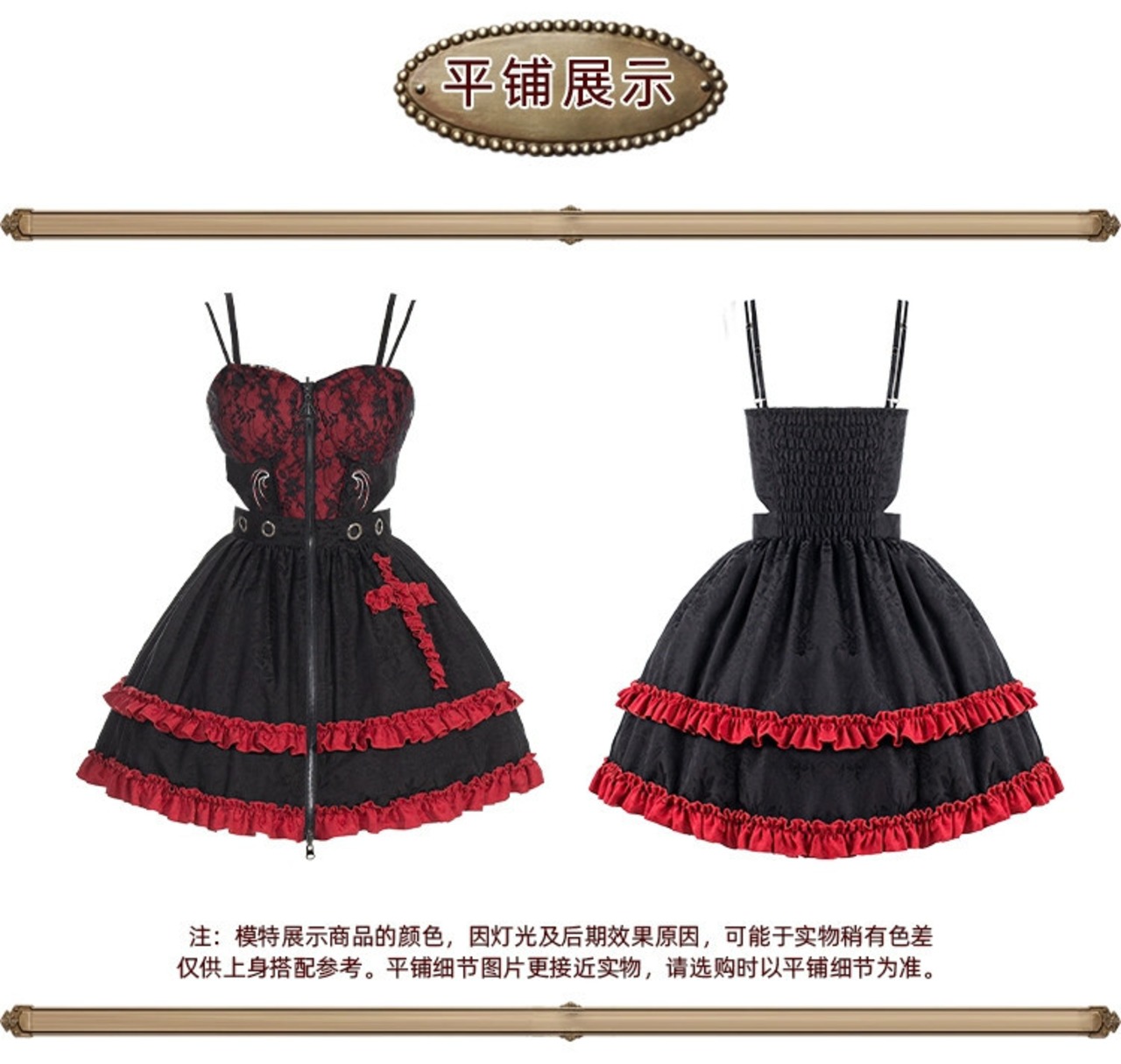 【Judgement Day JSK】WPオリジナル黒赤エレメントダークフロントジッパー胸パッド付きロースカート夏 レッド ブラック サマー 夏物 puji23415956188