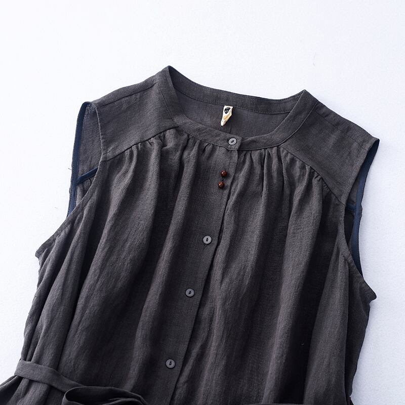 ディスカウントストアショッピングモール ese スタイル綿とリネンのノースリーブベストドレス女性のウエストレースアップリネン A ラインドレス コットン Aライン sine39466491995