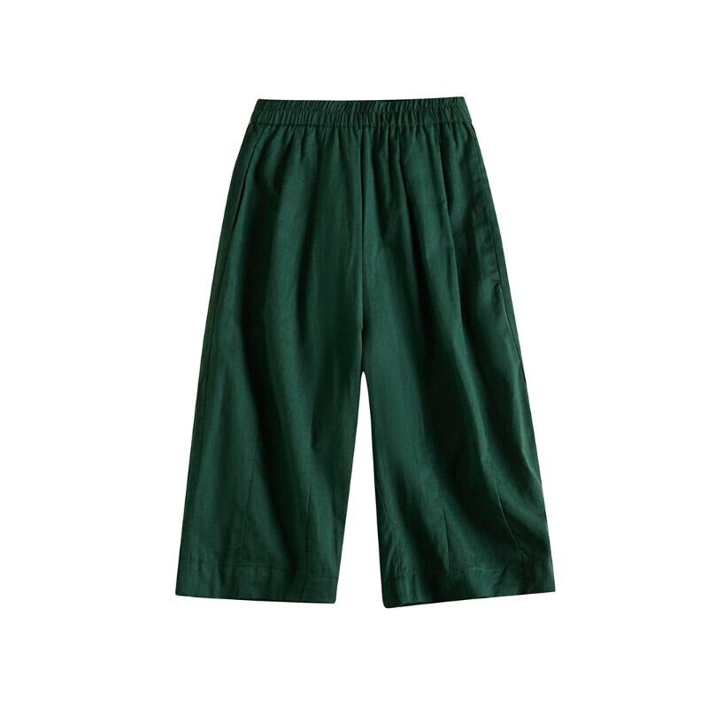 ese オリジナル シングル eign トレード ブランド 無地 多用途 コットンとリネン ワイドレッグ ショーツ レディース ウエストゴム カジュアル リネン 5点式 ミドル丈 パンツ エラスティック 伸縮 ブルマー ソリッドカラー sine76566612437