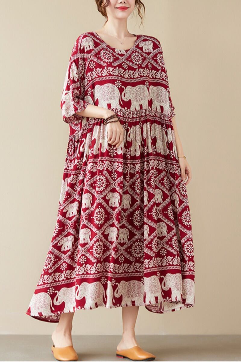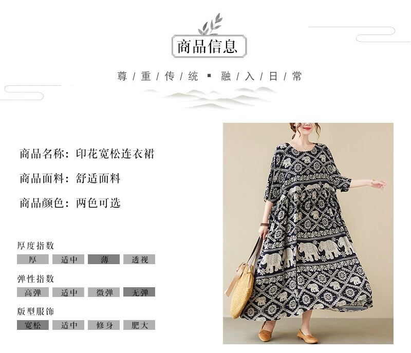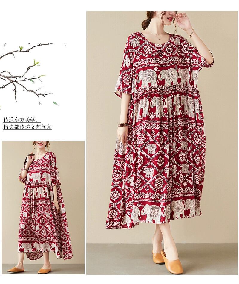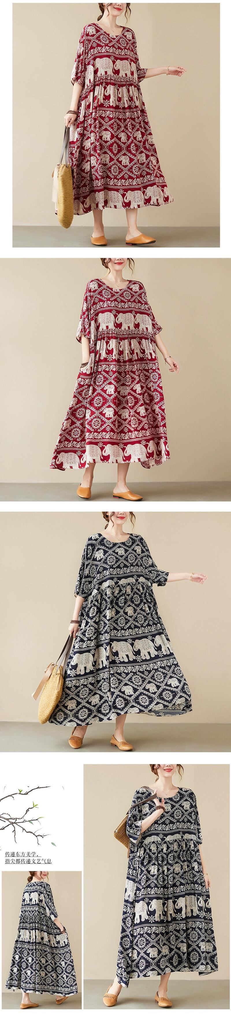 コットン シルク ドレス プラス サイズの女性のファッショナブルなドレスで年齢を 200 ポンド削減し、脂肪 mm エスニック スタイル プリント芸術的なミッドレングス スカート夏 大きめサイズ サマー 夏物 sine36686027850