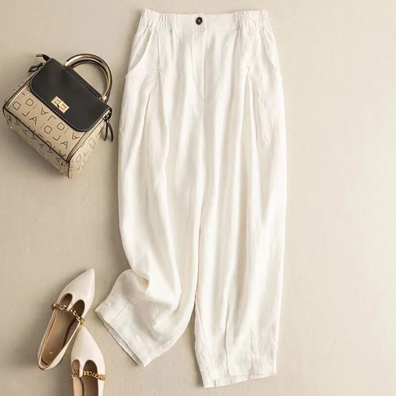 ディスカウントストアショッピングモール撤退レトロコットンとリネンカジュアルハーレムパンツ女性、ルーズハイウエストリネン9点お父さんパンツ sine94510302036
