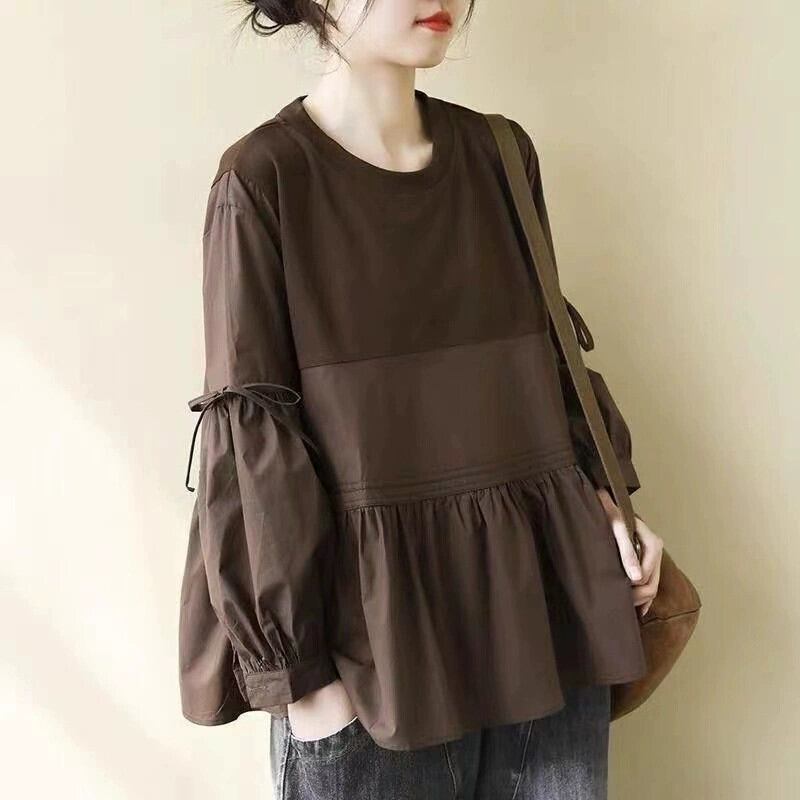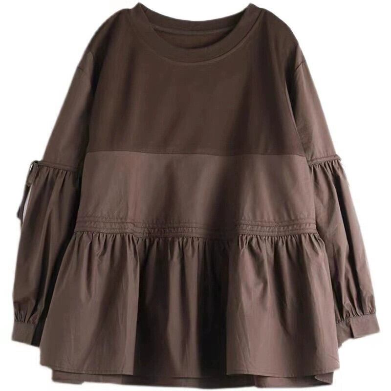 ese and eign trade brand テールグッズ カットマーク クリアランス レディース ゆったり プラスサイズ 年齢軽減 レースアップ ベビーシャツ 長袖 Tシャツ トップス ロング 大きめサイズ sine59100199969