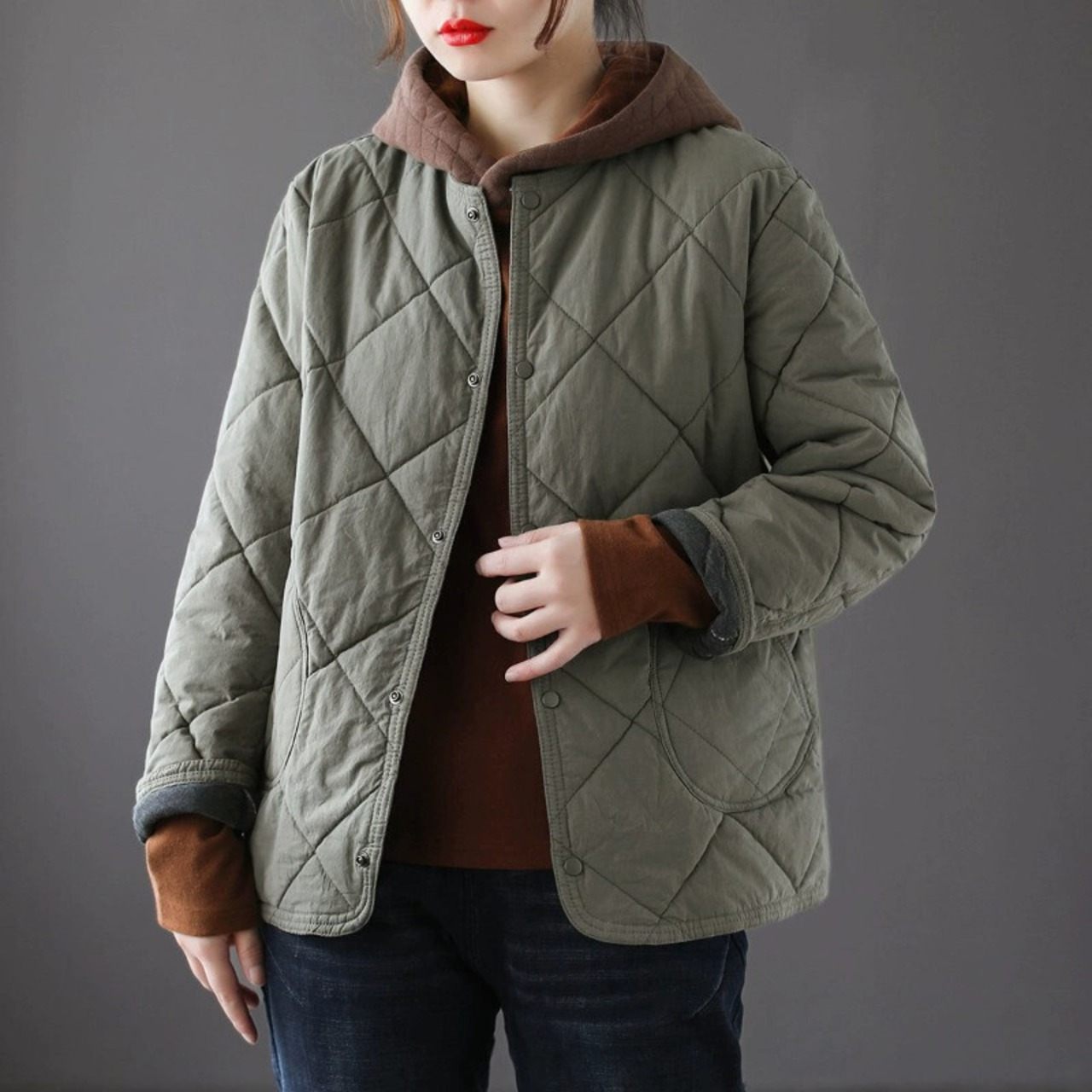 秋と冬の軽量ダウンパッド入りジャケットの女性、ゆったりとした大きいサイズのスタイルの菱形のシングルブレストのキルティングの厚く暖かい綿のジャケット コットン 大きめサイズ オータム 秋物 ウィンター 冬物 sine5952281368