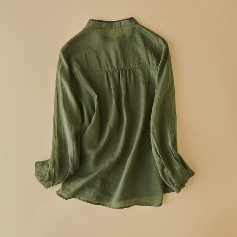 クリアランスリーク〜カウンター最終在庫レディースレトロパッチコットンとリネン長袖トップスルーズカジュアルリネンスタンドアップカラーシャツ ロング sine61206486598
