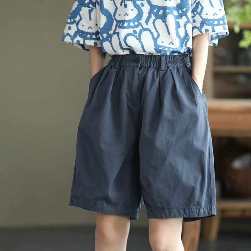 Eign Trade Export Big-Name Last Singledrawing レディース ルーズ ハイウエスト コットンとリネン ショートパンツ カジュアル ルーズ ワイドレッグ パンツ ミッドパンツ ショーツ ブルマー sine795366614