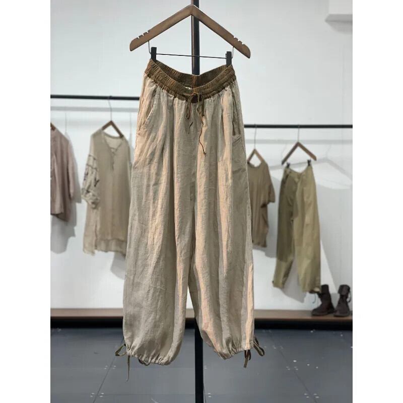 永貿易輸出大手ブランドテール商品カウンターから撤収対照的な色の綿とリネンのレギンスハーレムパンツ女性の緩いカジュアルリネン 9 点パンツ夏 コットン サマー 夏物 sine33307313126