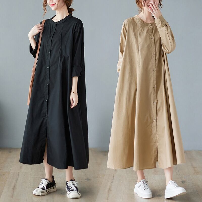 膝上シャツドレス 2021 秋と冬ルーズプラスサイズの女性の脂肪 MM レトロ文学ソリッドカラー人形ミッドレングススカート 大きめサイズ オータム 秋物 ウィンター 冬物 sine46705129019