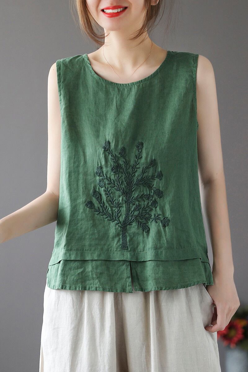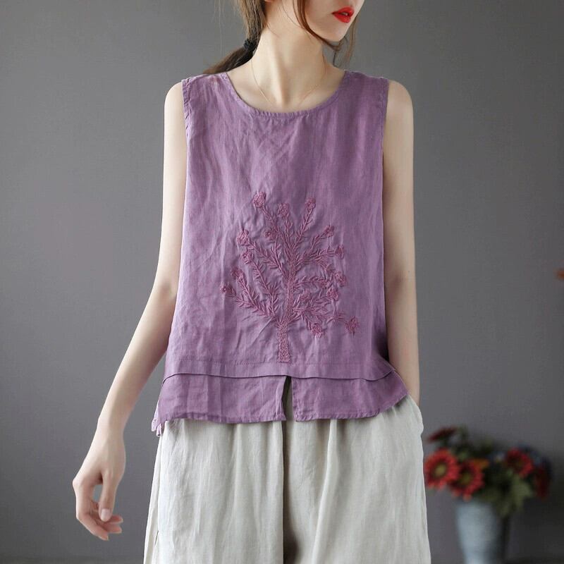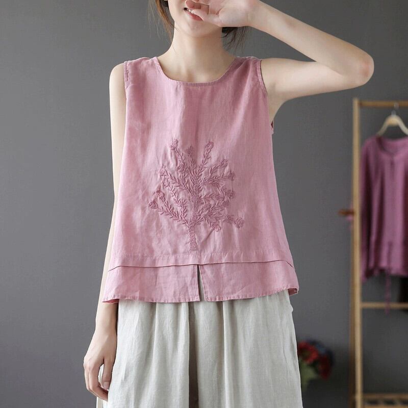 第一線のブランドディスカウントストアショッピングモール撤退カットラベルレディースコットンとリネンベストTシャツレトロ刺繍リネンノースリーブトップ レッド sine67076683858