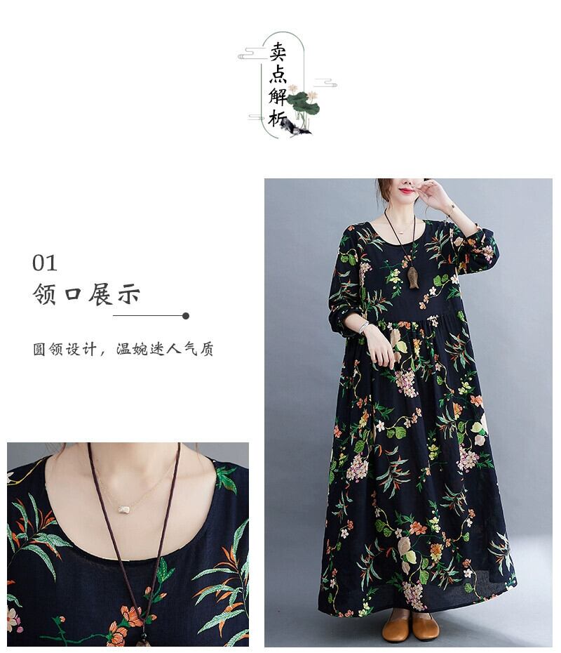 春と秋の気質と多用途のドレス女性、カジュアル、ファッショナブルで多用途、大きなスイングスカート、ゆったりとした大きいサイズ、芸術的なプリントのミドル丈スカート 大きめサイズ スプリング 春物 オータム 秋物 sine52159695933