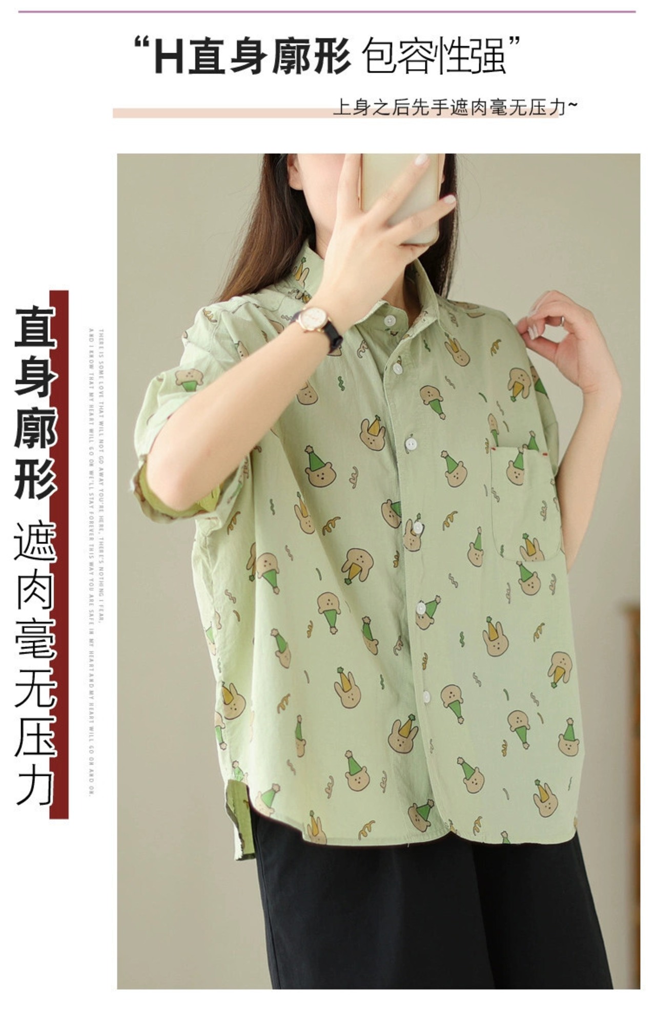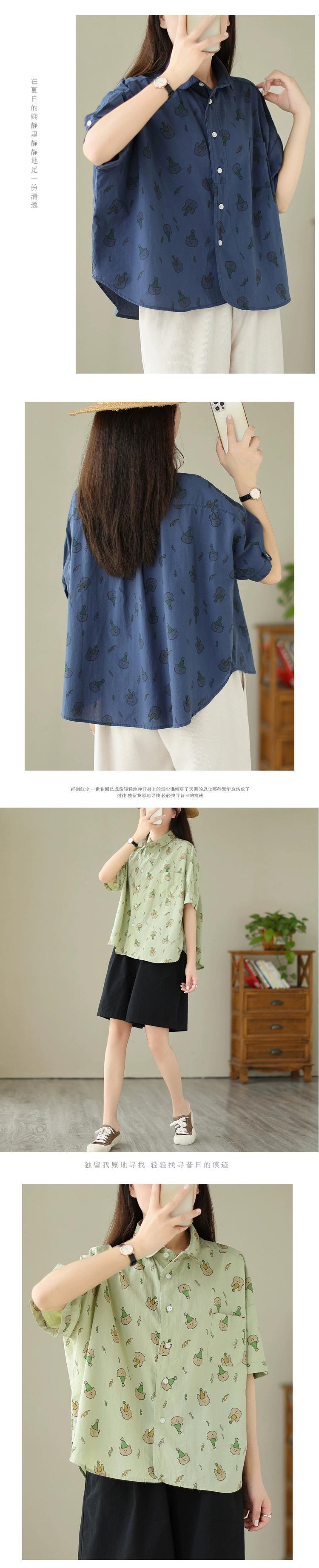 カウンタークリアランスクリアランスレディースレトロプリント半袖シャツルーズ&ライトラペルベビートップ sine32080530823