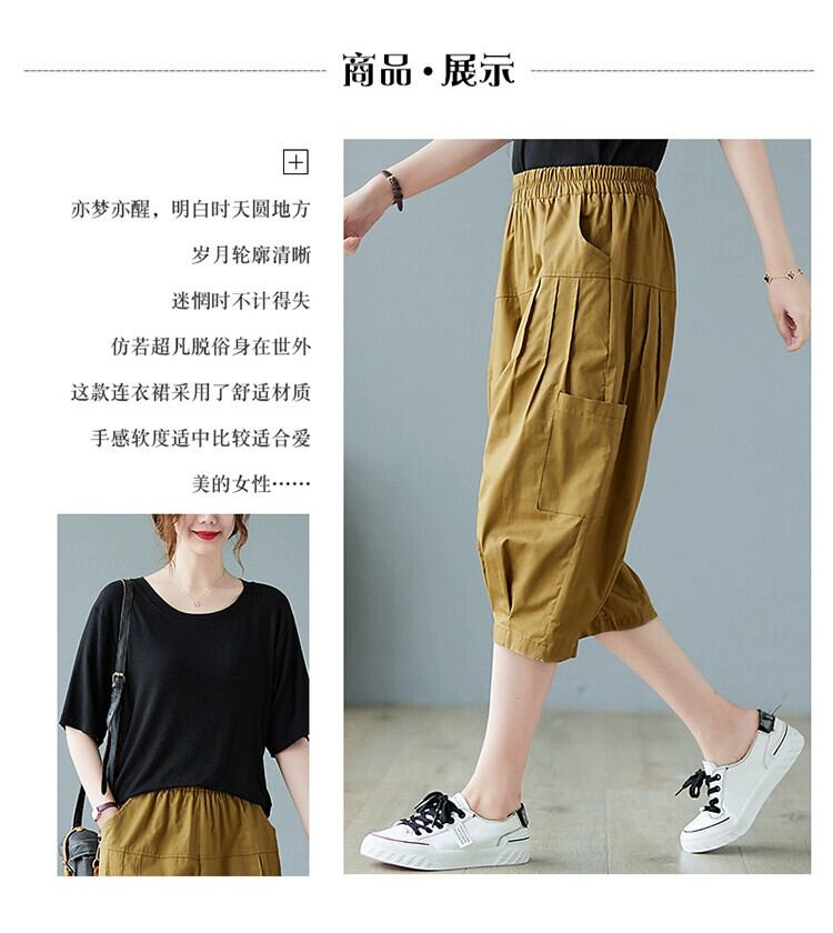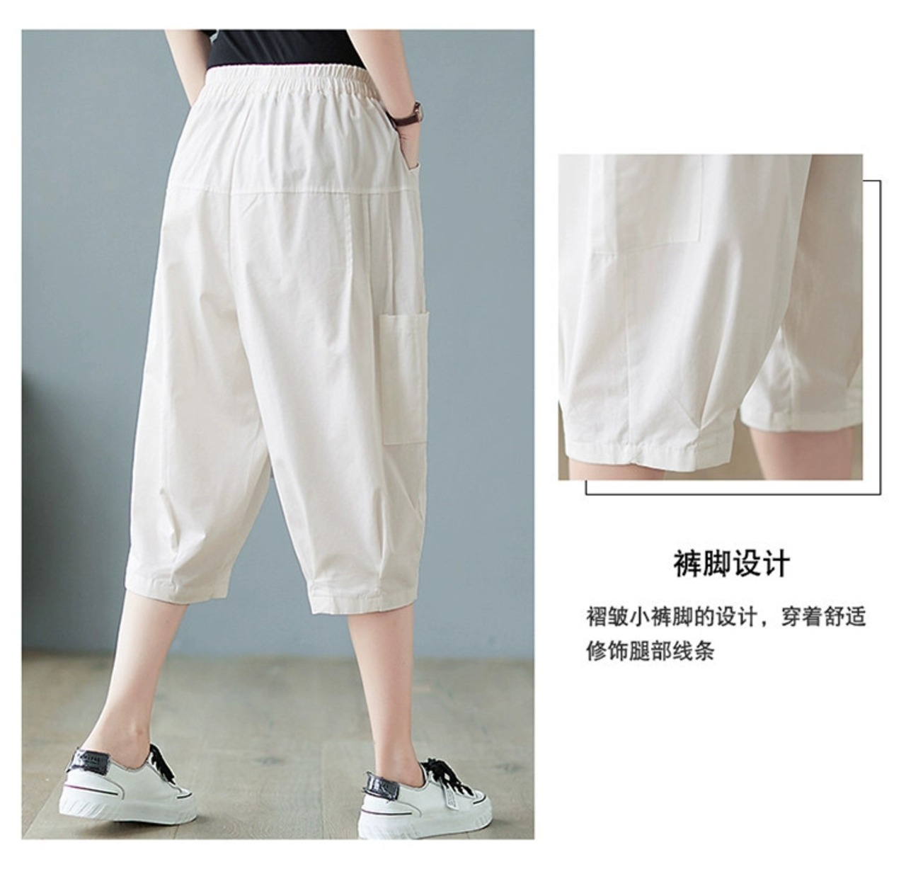 カーゴハーレムパンツ女性の夏 2021 ルーズ大きいサイズウエストゴム無地ミディアムパンツフットカプリパンツ エラスティック 伸縮 大きめサイズ サマー 夏物 ソリッドカラー sine47676853914