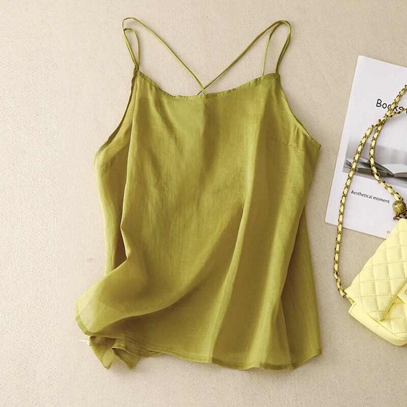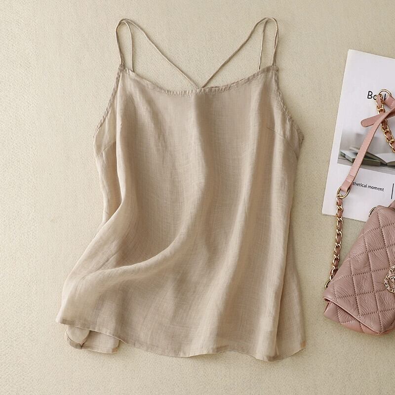 ese オリジナル eign trade ブランドレトロ綿とリネンの小さなキャミソール女性のゆったりとした軽いリネンインナーノースリーブトップ コットン sine24277958631