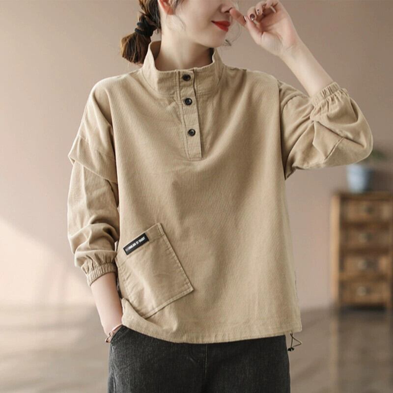 クリアランス漏れ〜カウンター最終在庫レトロコーデュロイレディーススウェットシャツジャケットルーズハイネック長袖コーデュロイトップ ロング sine52870325976