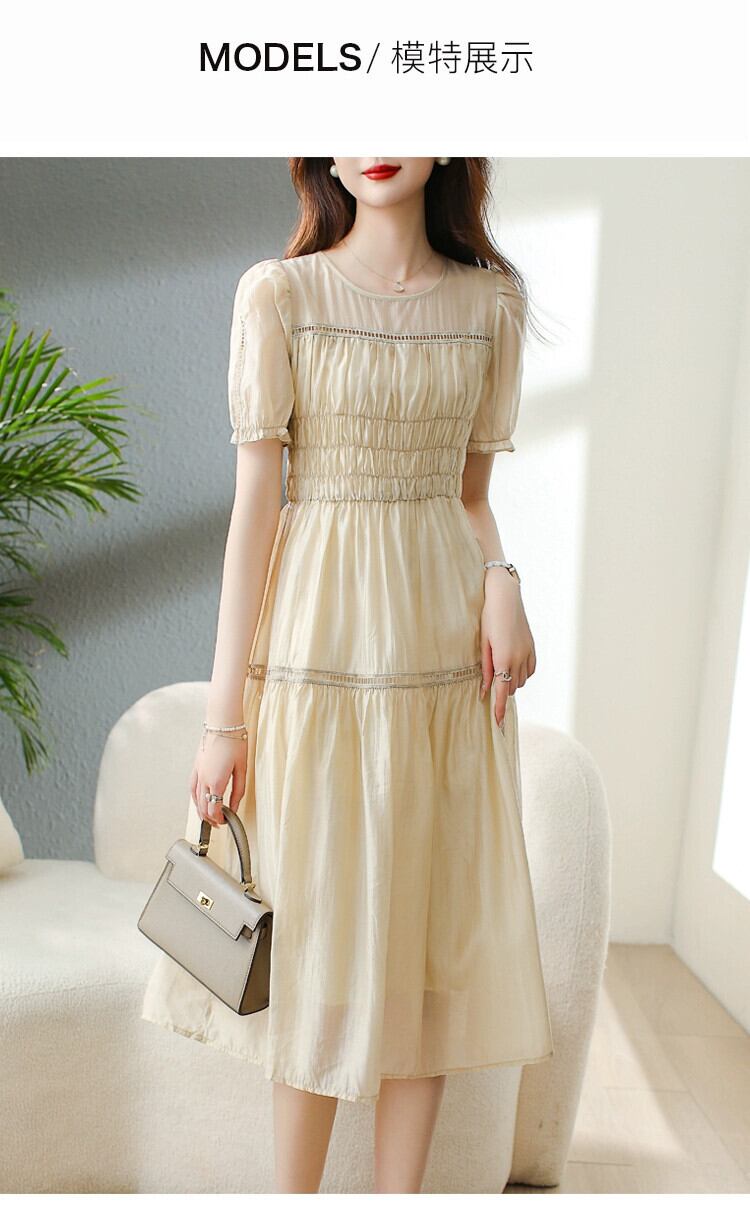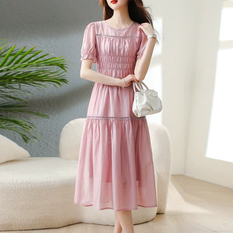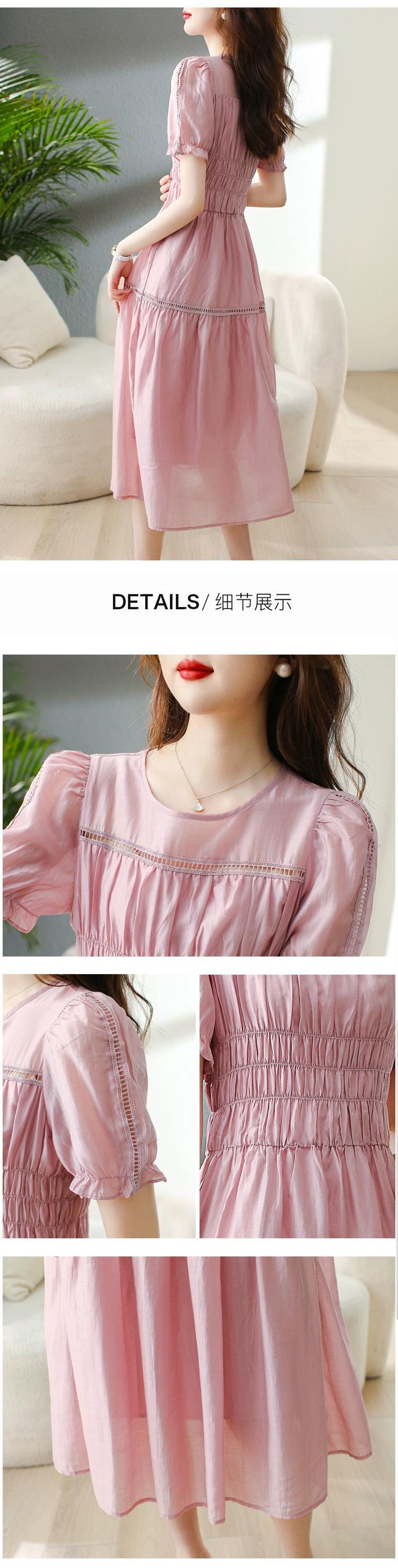Eign Trade Export Big Tail Goods キャビネットから撤収フレンチスタイルのピンクのドレス女性のウエスト痩身パフスリーブティーブレイクドレス sine34369804147