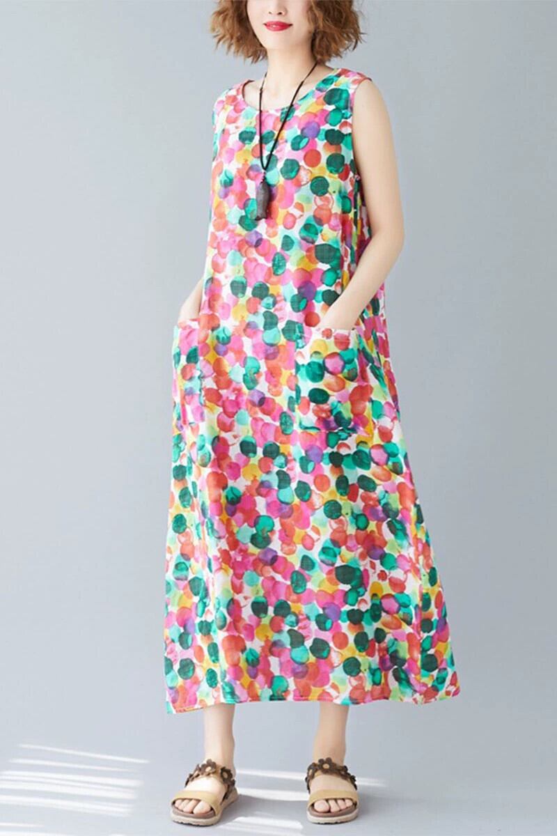 花柄ドレス女性の夏ルースファットミリメートルプラスサイズの女性の隠された肉優しいスタイルビーチミッドレングスタンクトップドレス 大きめサイズ サマー 夏物 sine49478621862