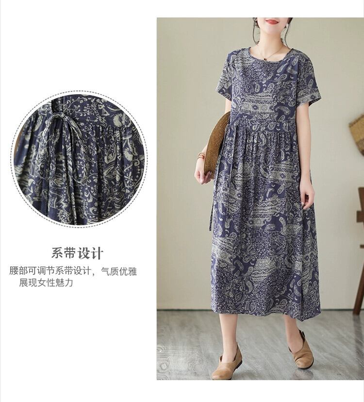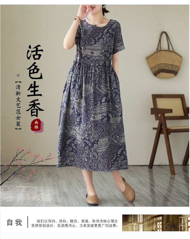 ディスカウント ストア ショッピング モール撤退ウエスト レースアップ綿とリネンのドレスの女性のレトロな花柄リネン A ライン ミドル丈スカート コットン Aライン sine69921028285