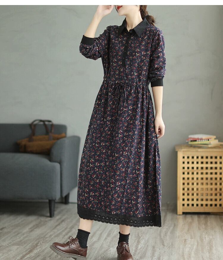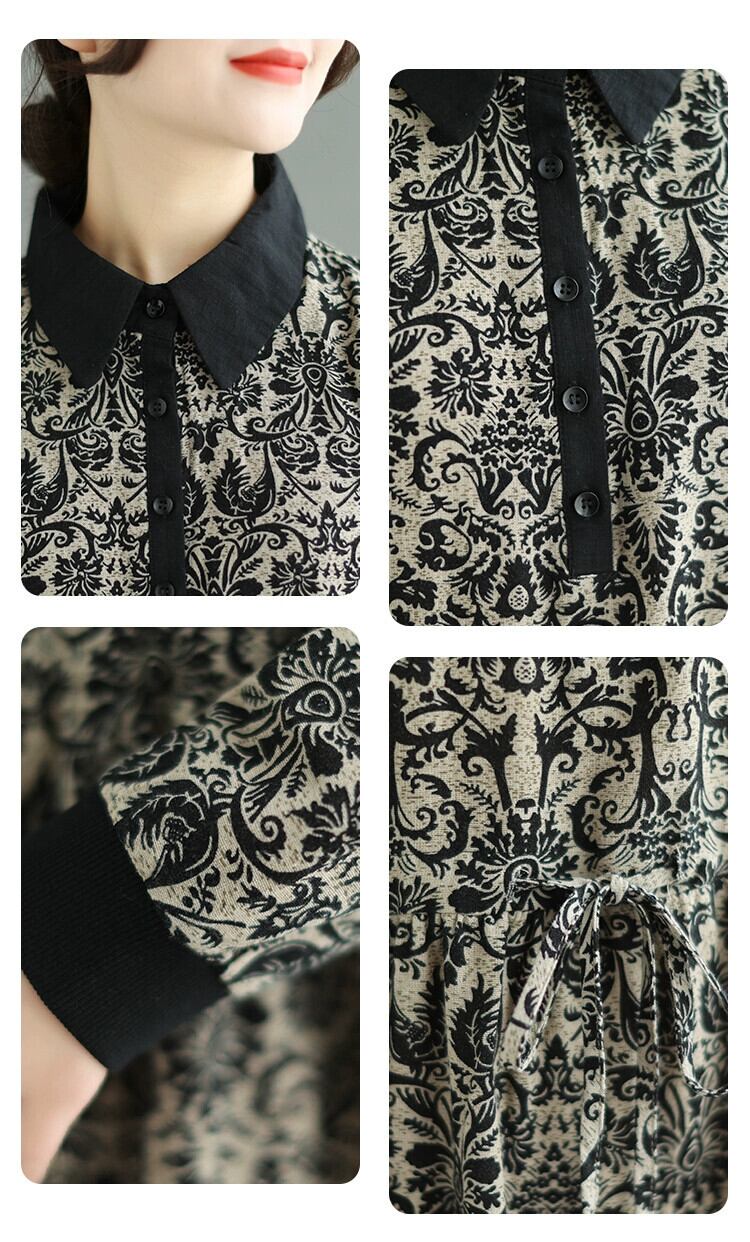 クリアランス漏れ〜女性用のレトロな花柄のコットンとリネンのドレス、ゆったりとしたスリムなリネンのシャツスカート、カウンターで大手ブランドが販売 sine50470897187