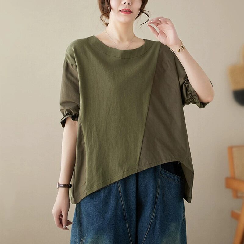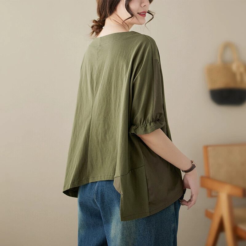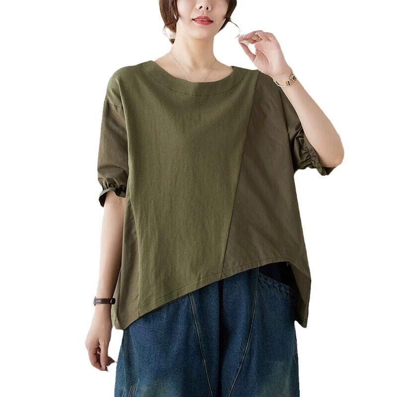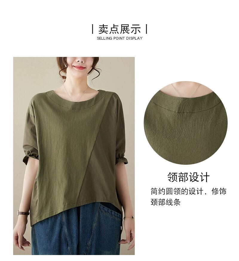 Eign Trade 輸出ブランドテールグッズスプライシング不規則半袖 Tシャツ女性無地多用途ルーズ痩身半袖トップ ソリッドカラー sine47027752842