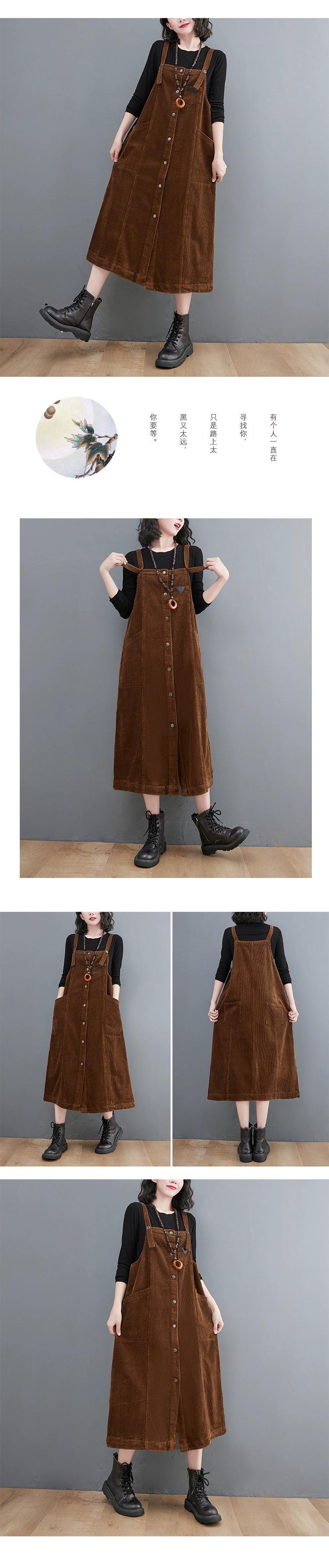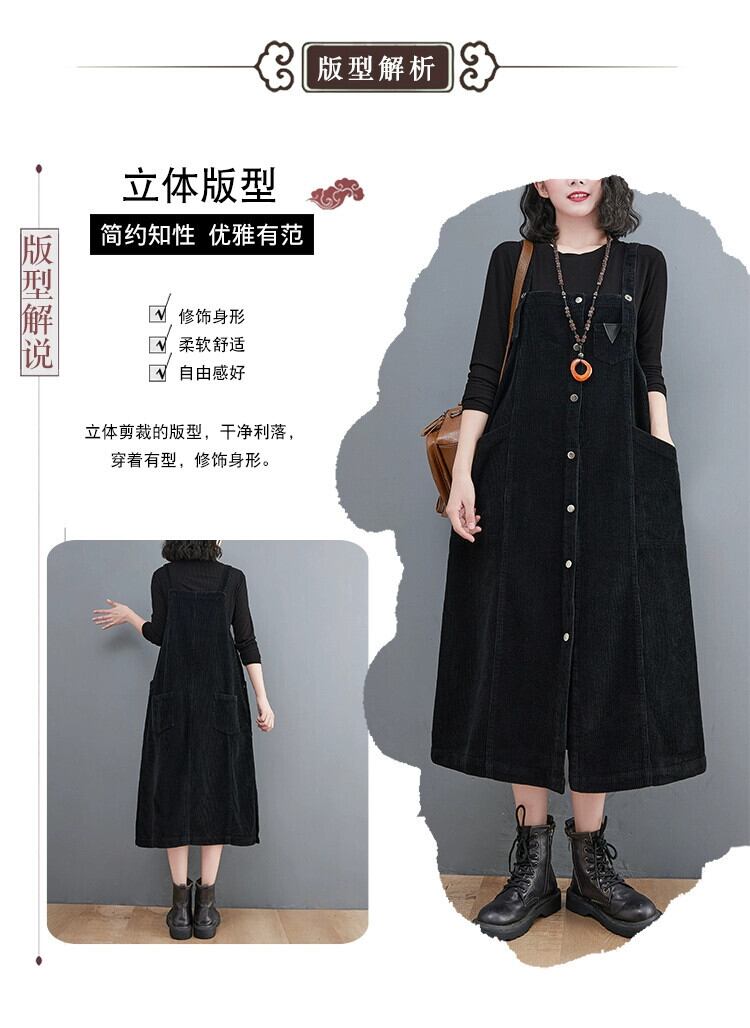 コーデュロイドレスの女性 2021 秋と冬ルース大きいサイズ脂肪ミリメートルレトロコーデュロイ膝丈ミッドレングスサスペンダースカート 大きめサイズ オータム 秋物 ウィンター 冬物 sine83857827483