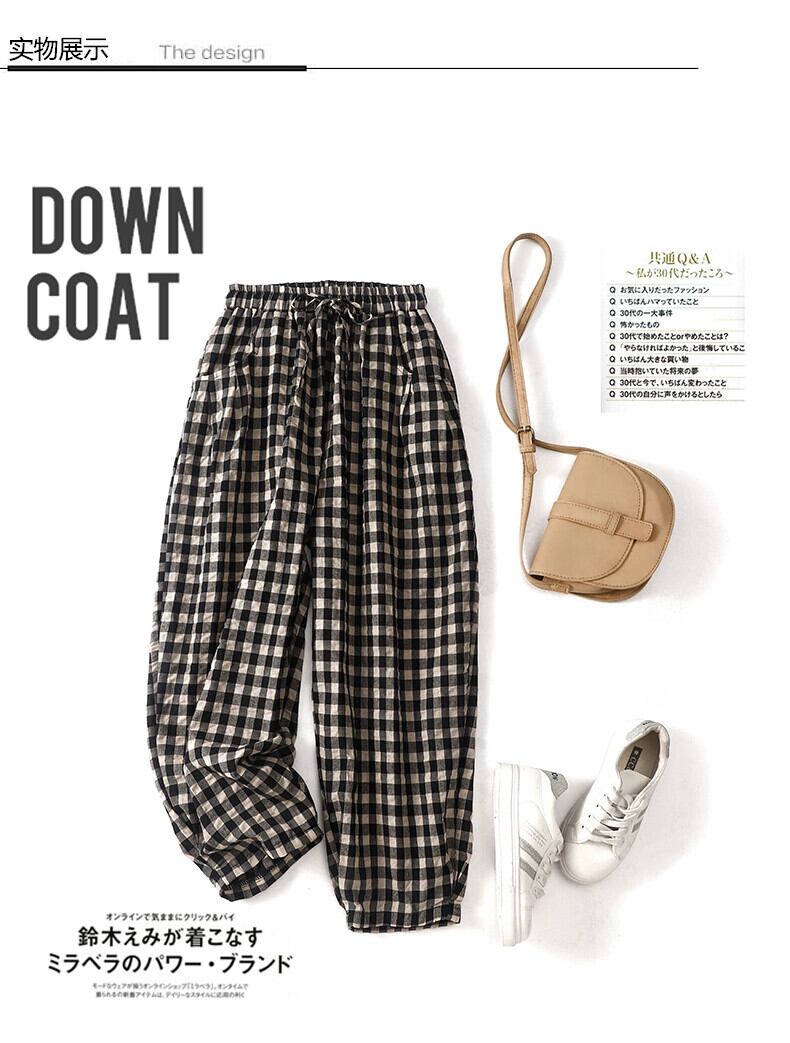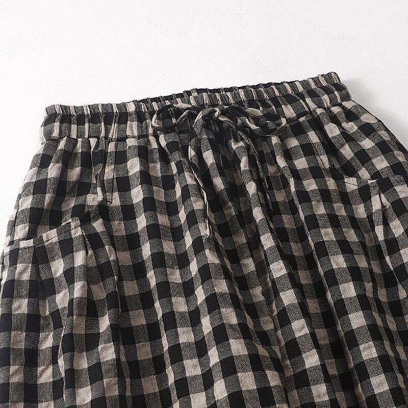 クリアランスリーク〜カウンターには大手ブランドの女性用ハイウエストラミー9点ブルマー、レトロなチェック柄のカジュアルなコットンとリネンのハーレムパンツ ショーツ sine50435673769