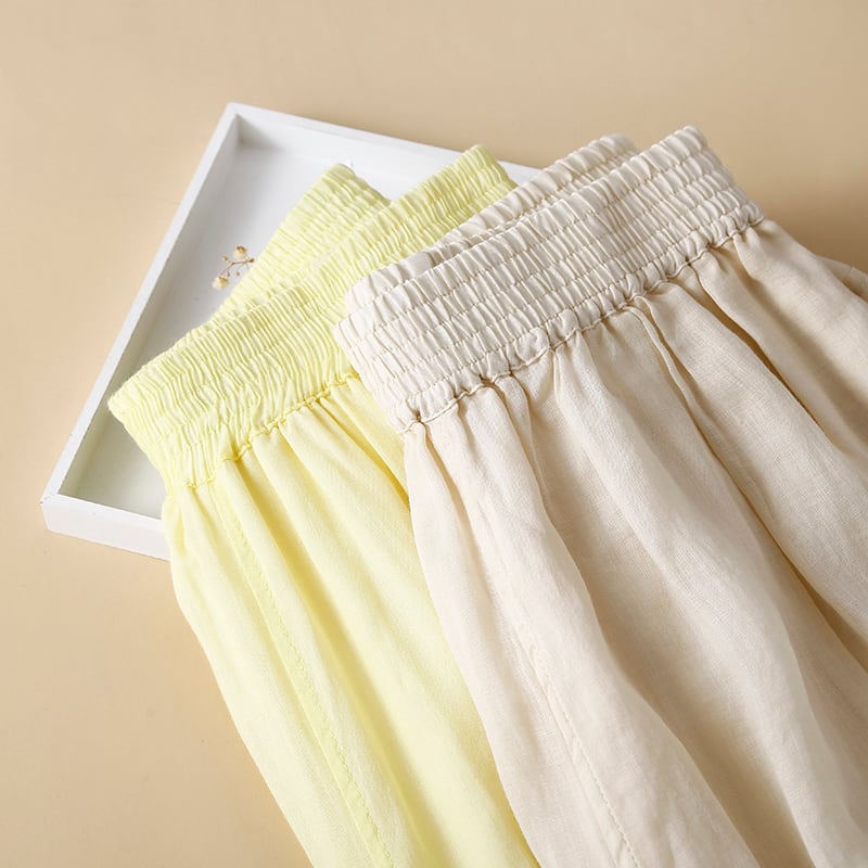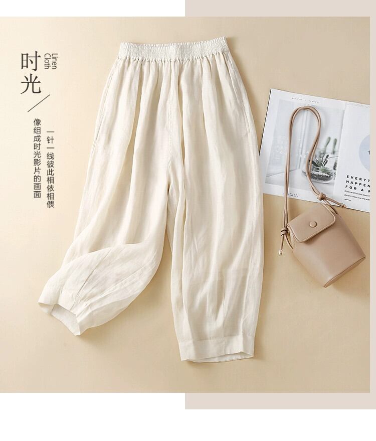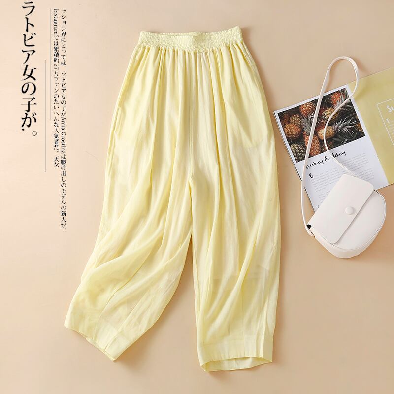 Eign Trade Export Big Tail Goods 撤退無地多用途リネンハーレムパンツレディース弾性ウエストカジュアルコットンとリネン 9 点パンツ エラスティック 伸縮 ソリッドカラー sine73464043785