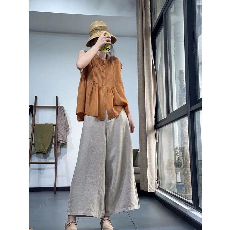 ese オリジナル eign trade 有名な女性のファッション無地チョッキ綿とリネンのシャツ夏軽くてルーズノースリーブトップ コットン サマー 夏物 ソリッドカラー sine47434854583