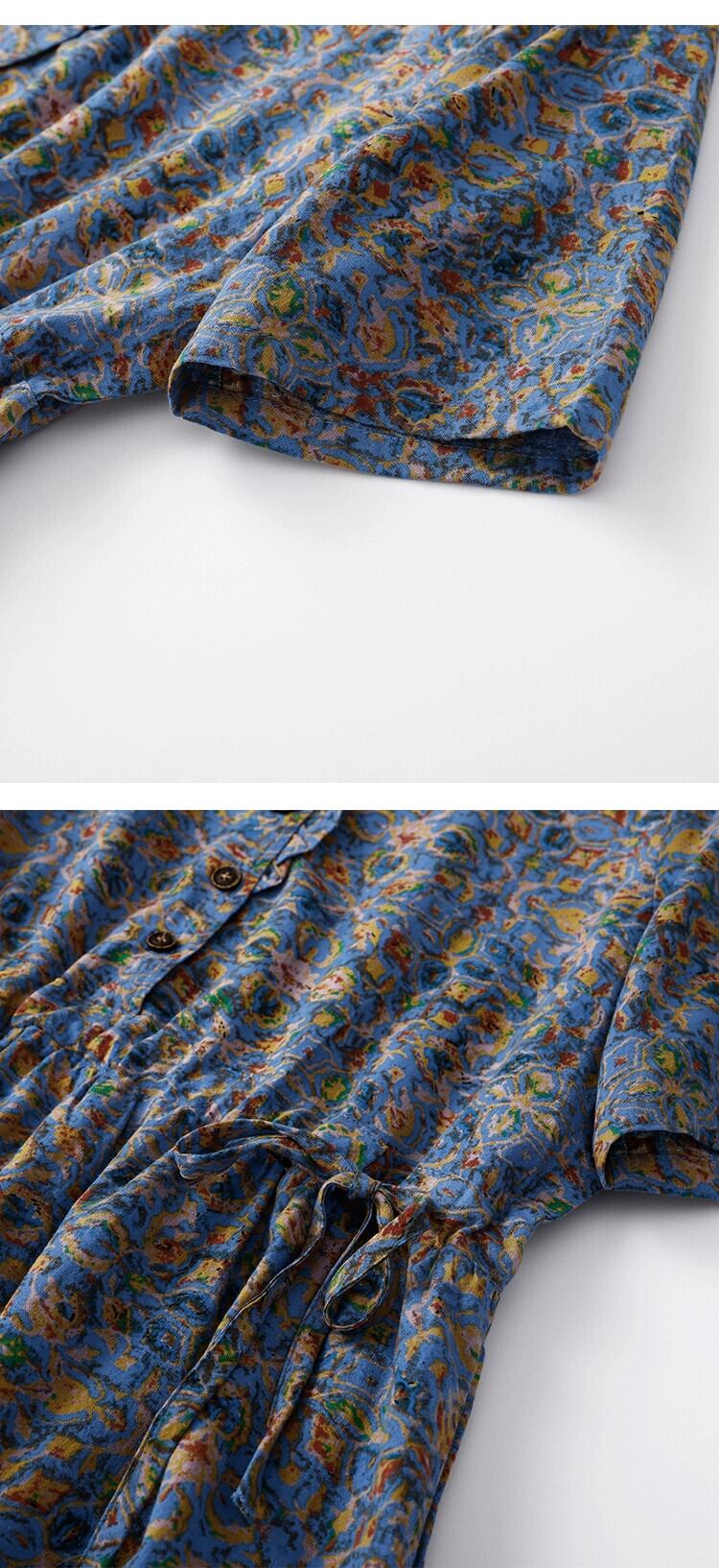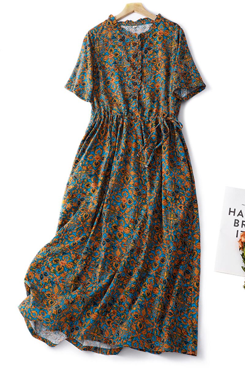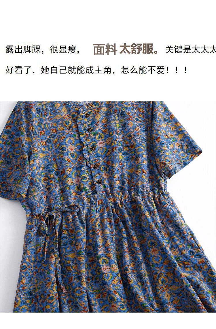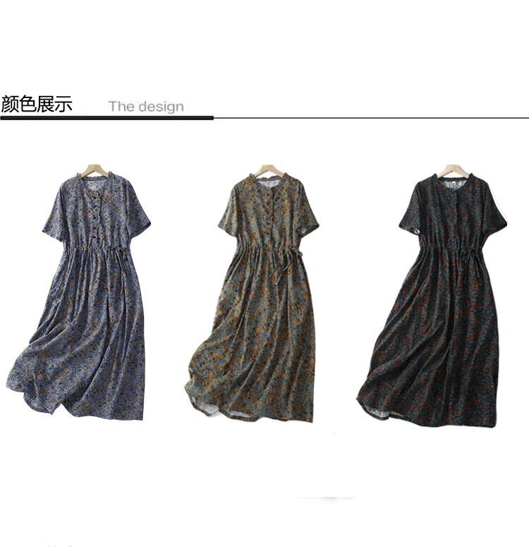 eign trade ese オリジナルハイエンドブランドの女性のリネン花柄半袖ドレス、ウエストレースアップコットンとリネンのロングスカート sine6784879788