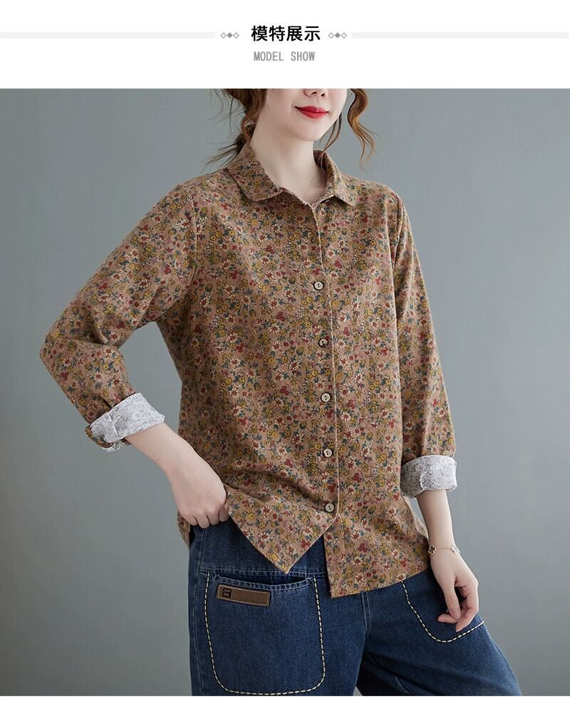 綿とリネンのシャツの女性 2022 春と秋の新ルーズ大きいサイズレトロカジュアル花柄長袖ポロ襟リネントップス ロング コットン 大きめサイズ スプリング 春物 オータム 秋物 sine48699407320