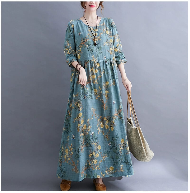 エスニックスタイルプリントドレス女性 2021 春と秋緩い大きいサイズ芸術的なプリント西洋スタイル年齢を減らす隠し肉ミッドレングススカート 大きめサイズ スプリング 春物 オータム 秋物 sine29514475832