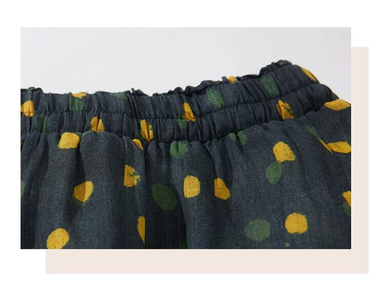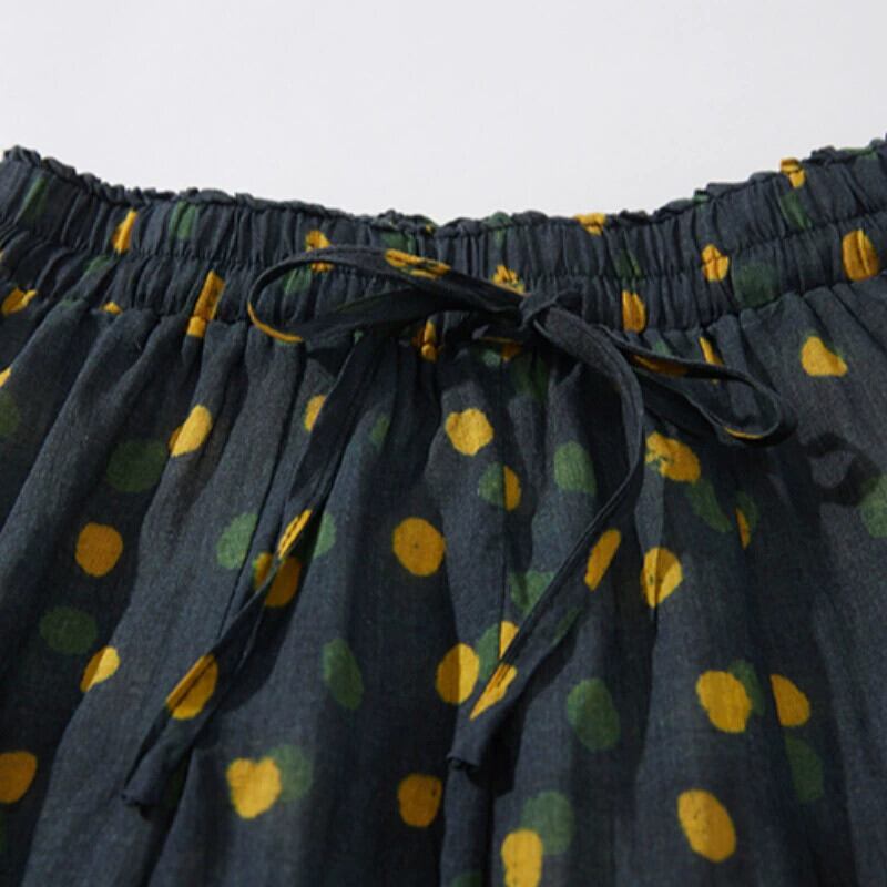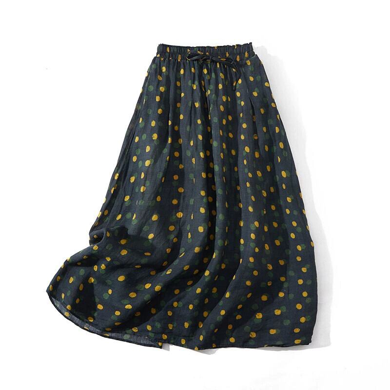 永貿易輸出ビッグブランド尾品撤退レディースリネン水玉プリントスカート弾性ウエスト綿とリネン大きな裾 A ラインスカート コットン エラスティック 伸縮 Aライン sine53959232518