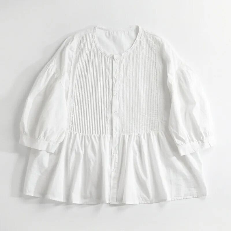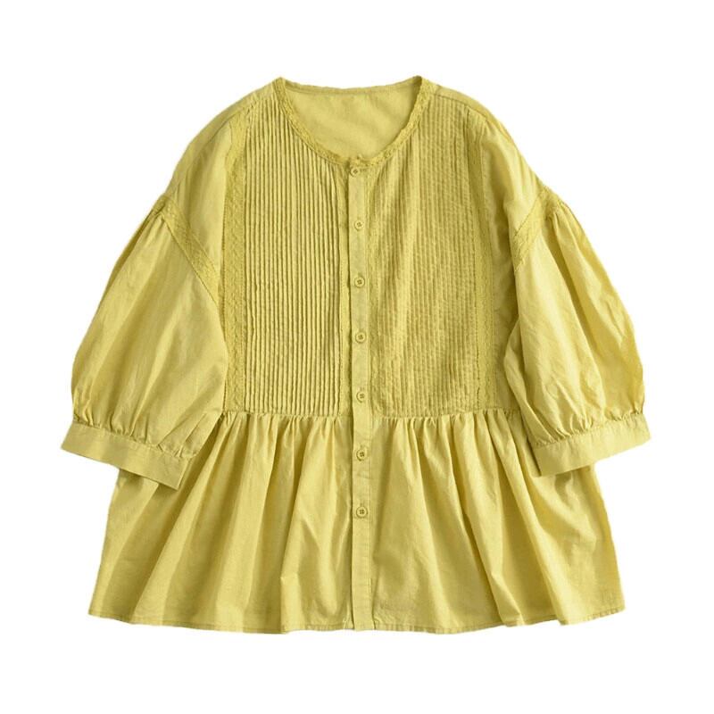 ese とオリジナル eign trade ビッグネームテールグッズアコーディオンプリーツコットンとリネン半袖シャツ女性の夏のルーズリネンドールシャツ サマー 夏物 sine28837675099