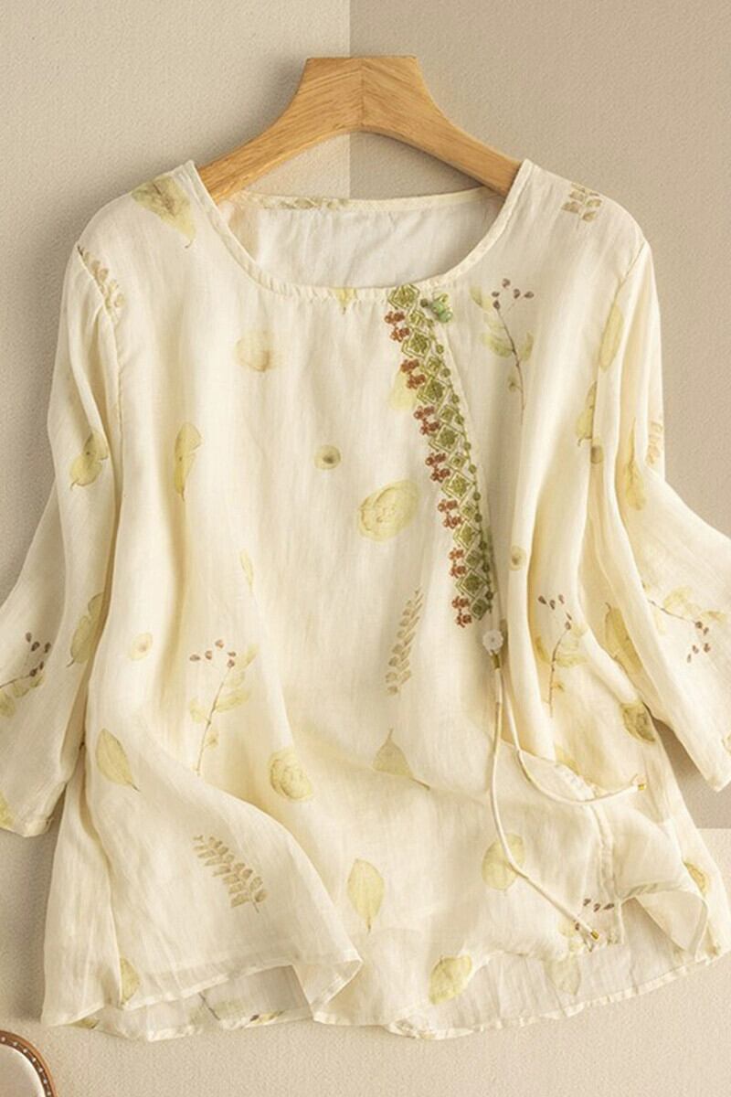 Eign Trade 輸出ブランドテールグッズ綿とリネン刺繍シャツ Tシャツレディースルーズカジュアルリネン半袖シャツトップ薄い レッド コットン sine42774427122