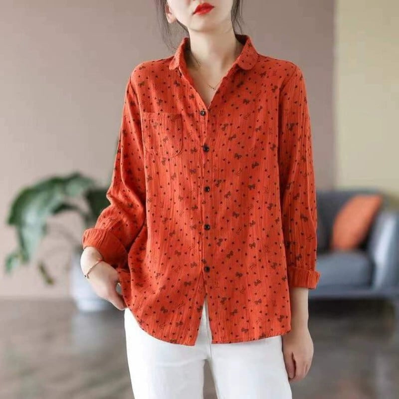第一線の有名な貿易輸出在庫切れ婦人服クリアランス花柄ボトムストップスリネンコットンリネン長袖シャツ ロング sine78780966588