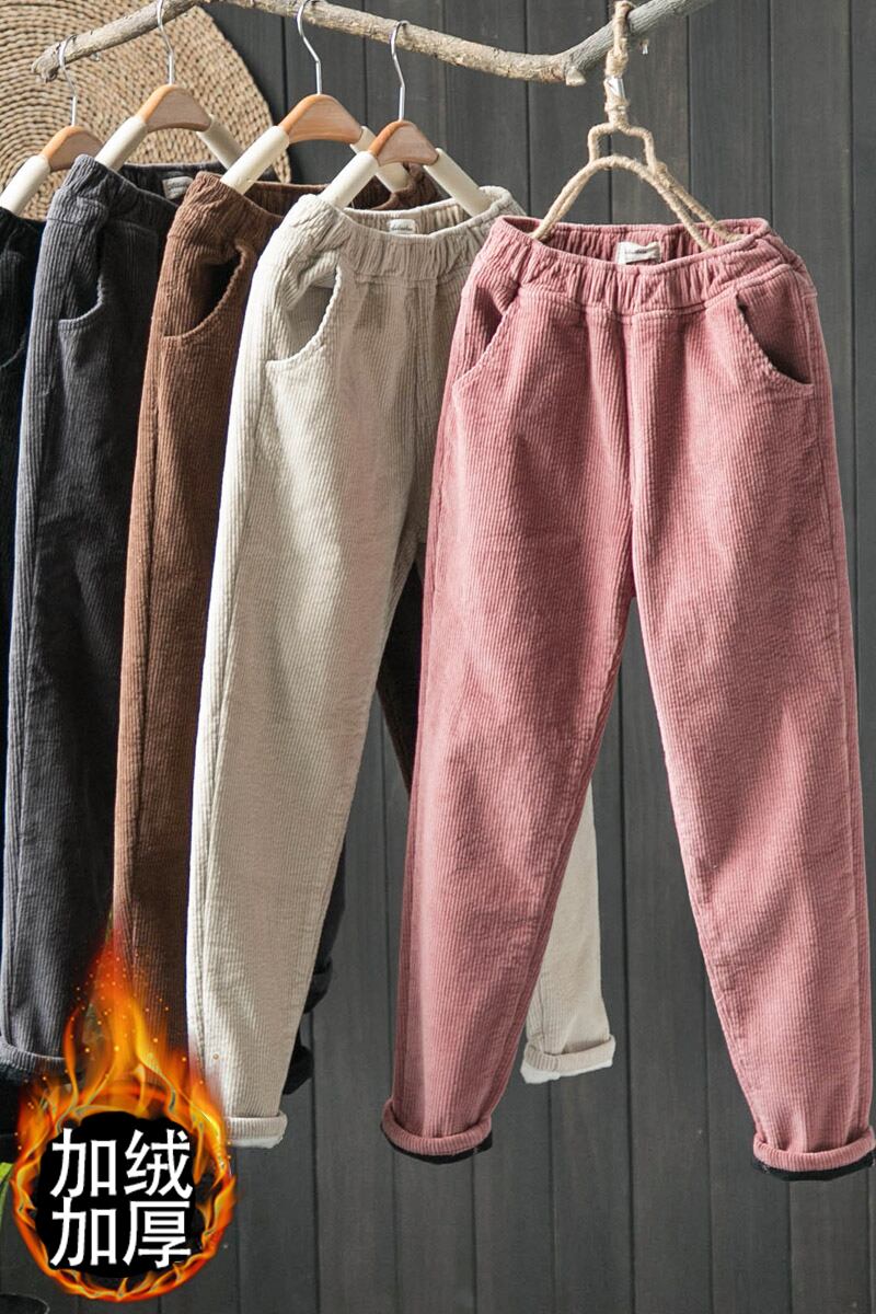 コーデュロイパンツの女性の秋と冬の新しい緩い大きいサイズプラスベルベット肥厚ニンジン学生コーデュロイカジュアルハーレムパンツ 大きめサイズ オータム 秋物 ウィンター 冬物 sine91717729108