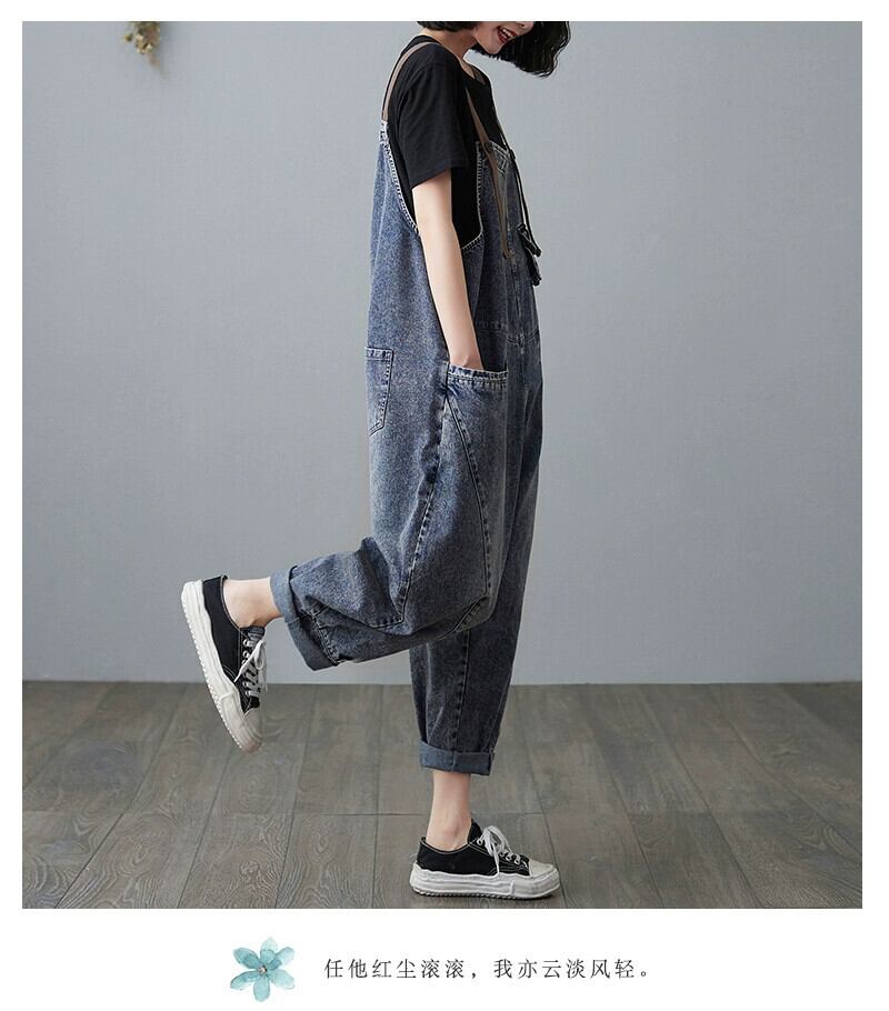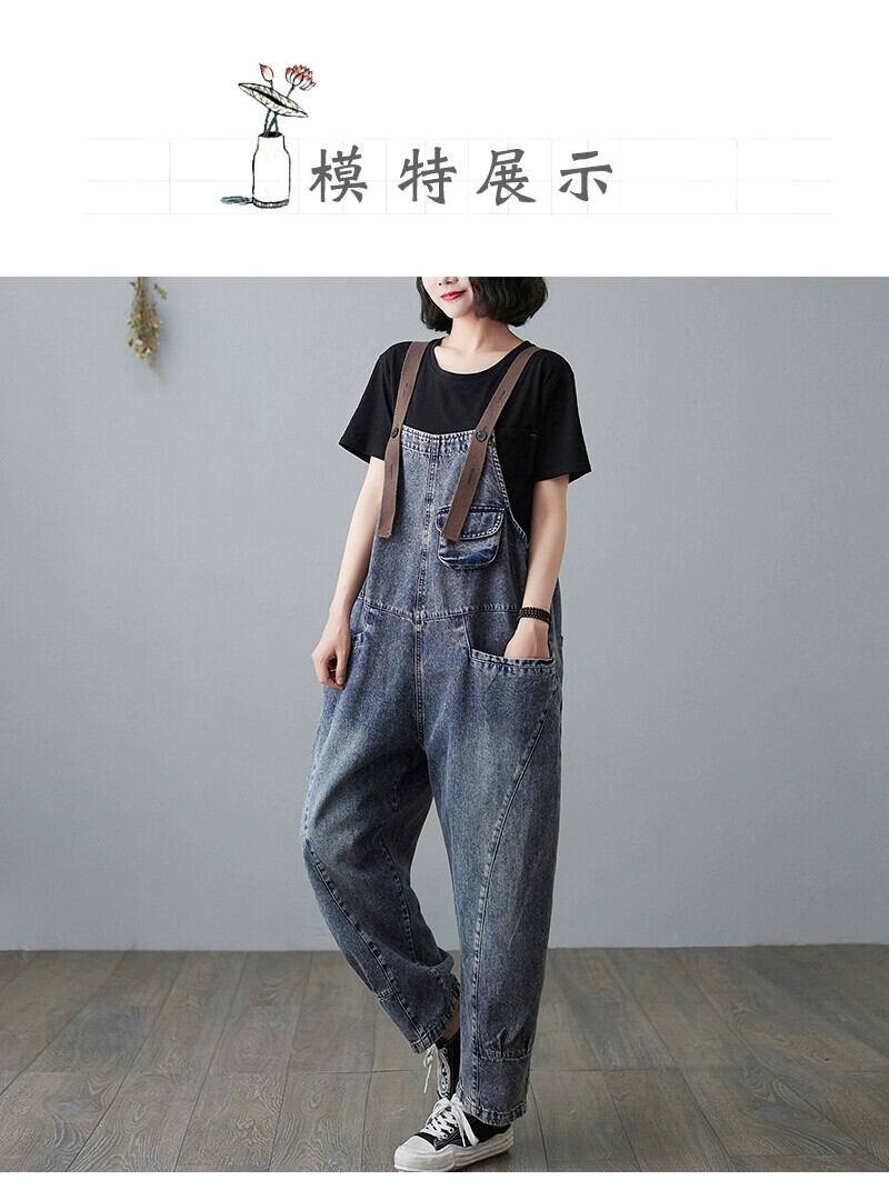 プラスサイズの女性のデニムオーバーオール 2021 秋と冬ルーズファットシスタースタイルダメージ加工ワンピースカジュアルハーレムパンツ 大きめサイズ オータム 秋物 ウィンター 冬物 sine77993746487