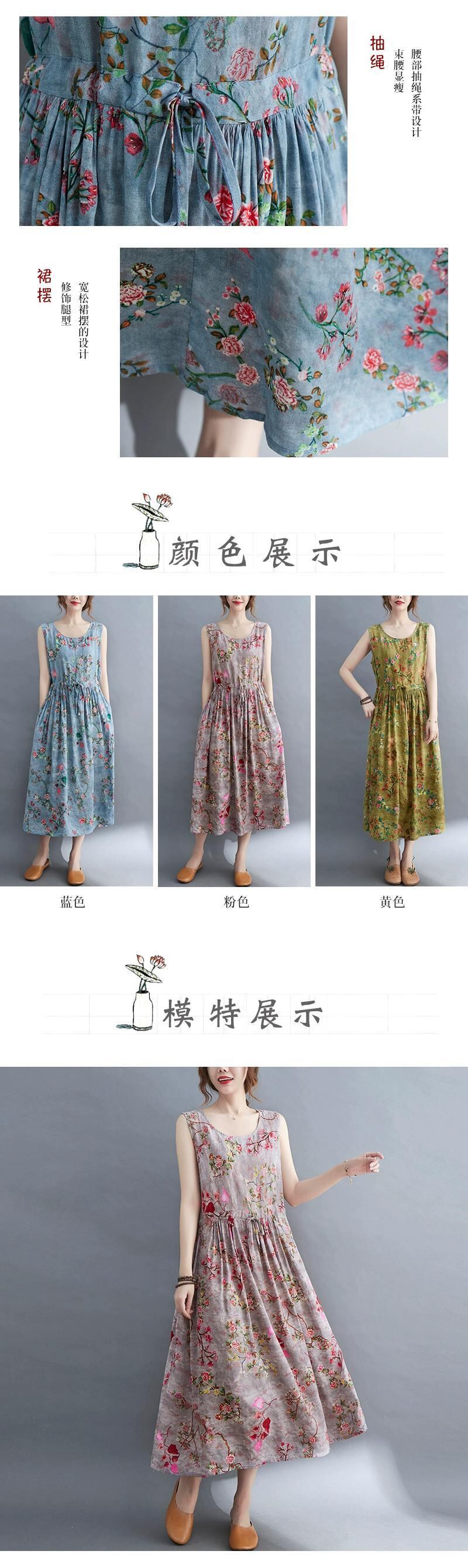 コットンとリネンのベストドレスの女性の夏 2021 新しい緩い大きいサイズのスタイリッシュな花レースアップウエストワイド裾ミッドレングススカート 大きめサイズ サマー 夏物 花柄 sine29076289287