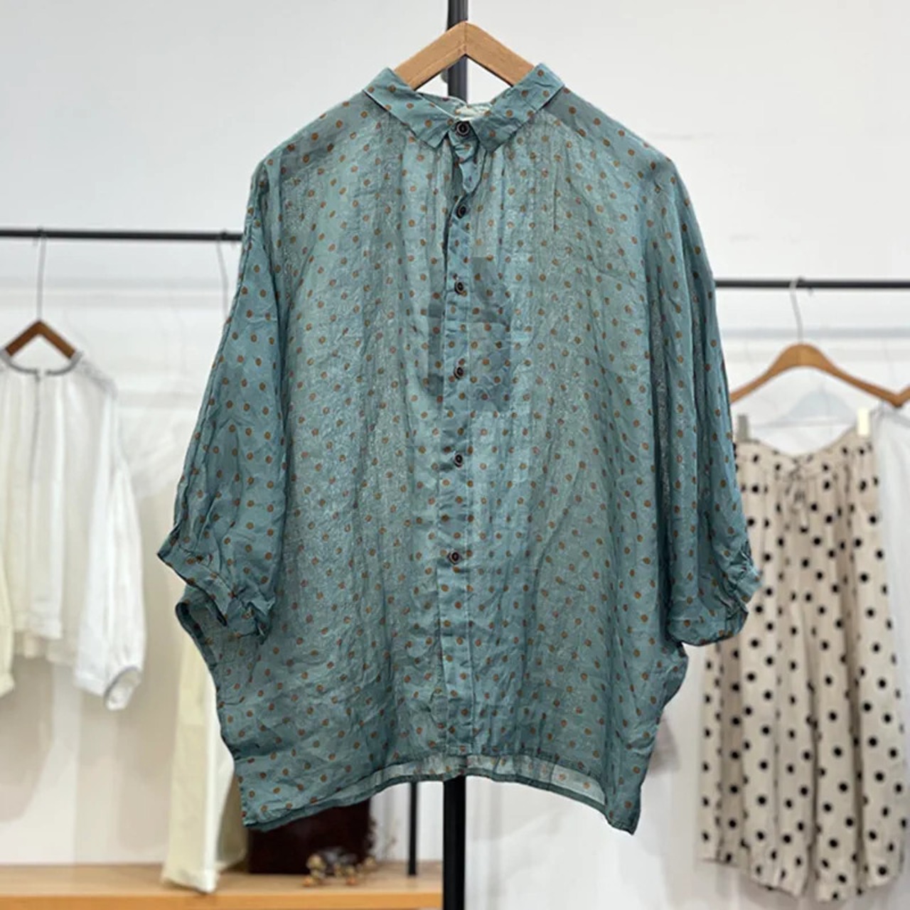 第一線のブランド eign trade 撤退 ese スタイルの水玉リネン シャツ レディース ルーズで軽い綿とリネンの日焼け止めシャツ トップ コットン sine52488396991