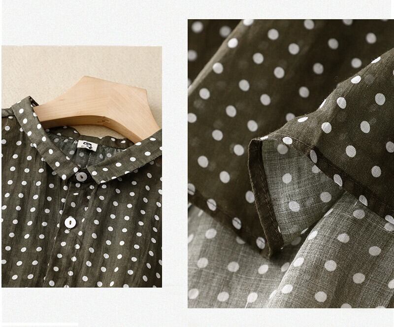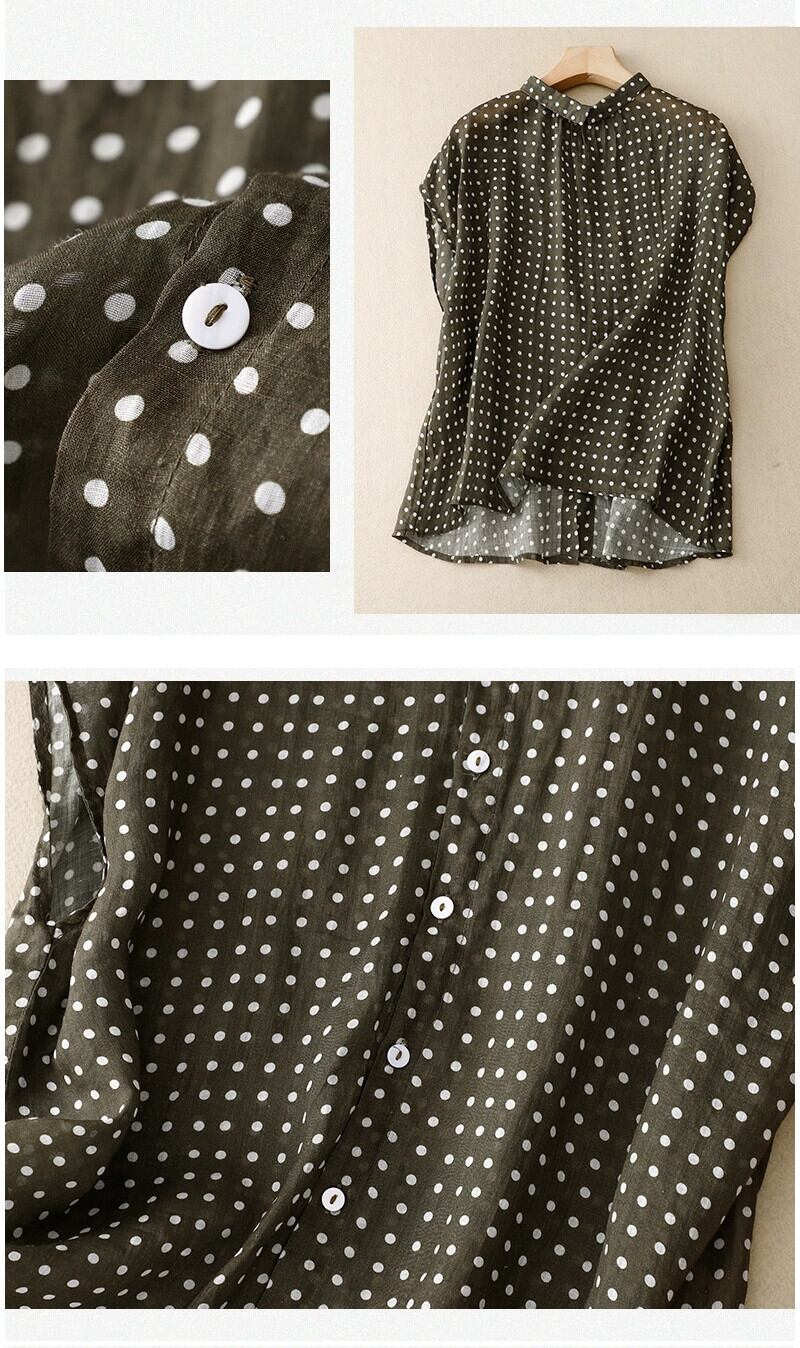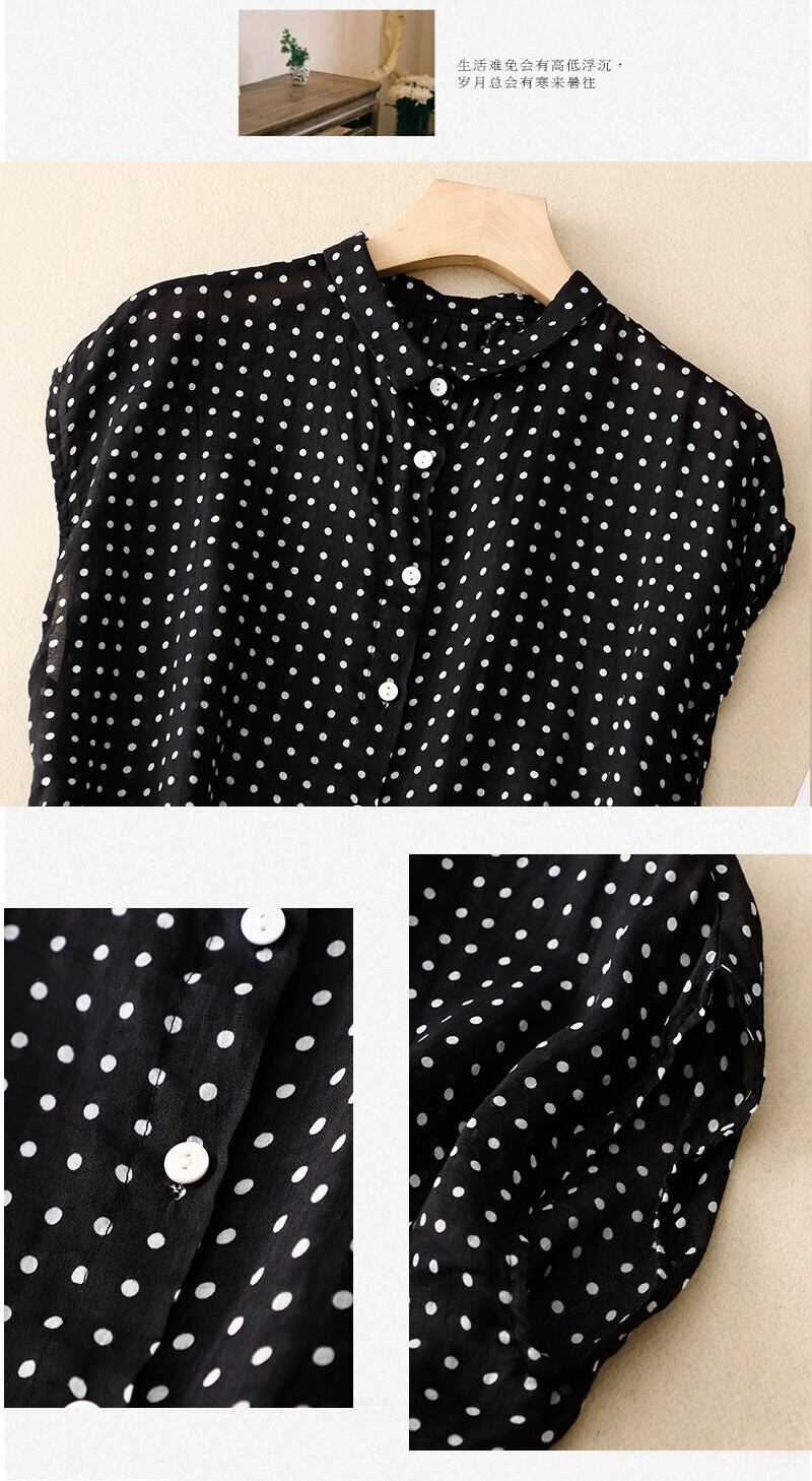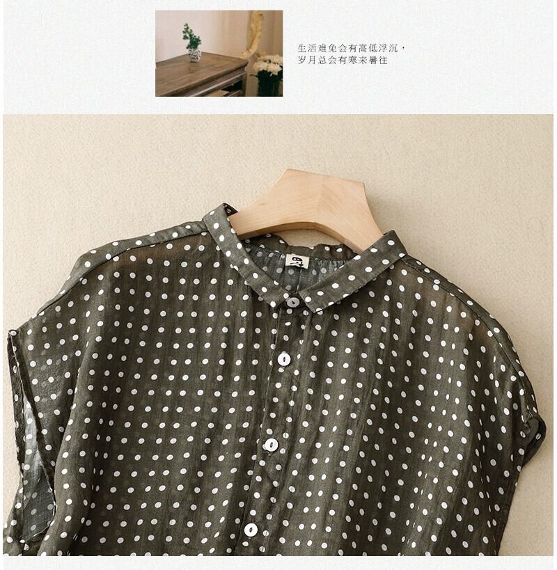 クリアランス漏れ ~ 有名な既製のコットンとリネンの水玉模様のノースリーブ シャツの女性、ゆったりとした軽いリネンのトップをカウンターします。 sine68394635873