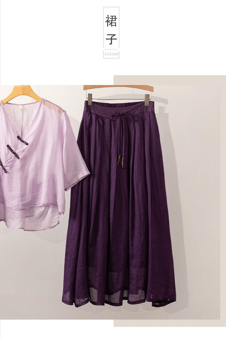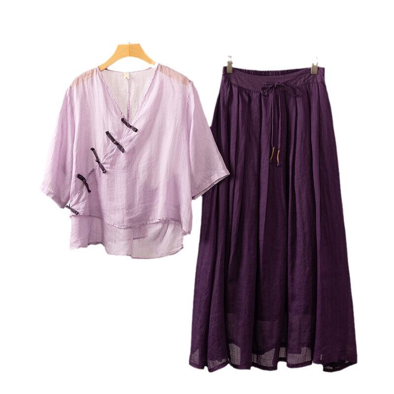 第一線ブランド eign trade 撤退最終在庫中国風バックルラミートップ二重層コットンとリネンスカート 2 点セット女性 sine5442561108