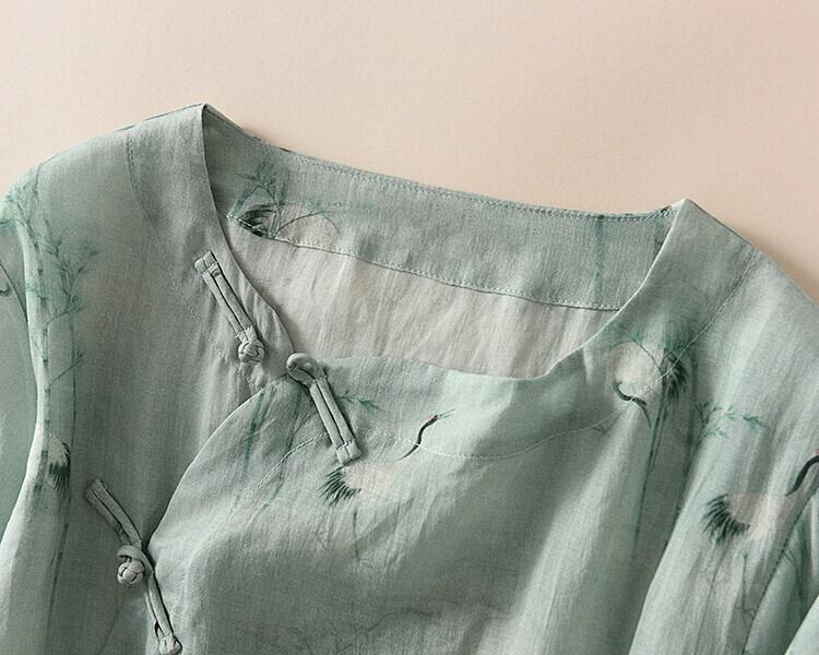 永貿易輸出ビッグブランドテール商品撤退女性の新しい中国風の綿とリネンのシャツトッププリントリネン半袖シャツ コットン sine63212782352