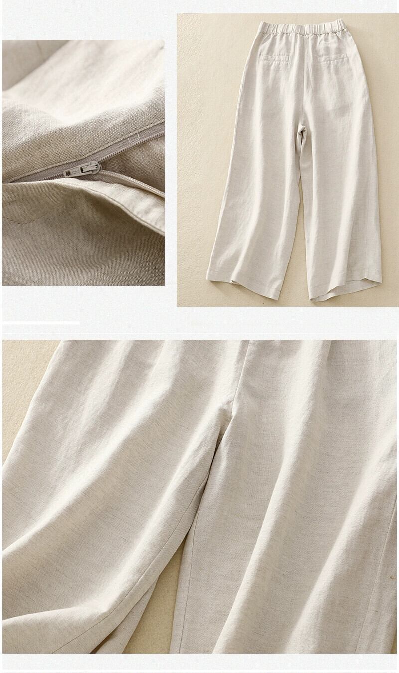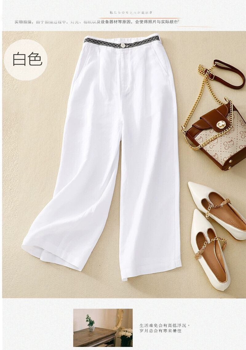 ese オリジナルシングル eign 貿易ビッグネームルーズドレープ綿とリネンワイドレッグパンツ女性ハイウエストストレートリネンカジュアル 9 点パンツ夏 コットン サマー 夏物 sine20171540728